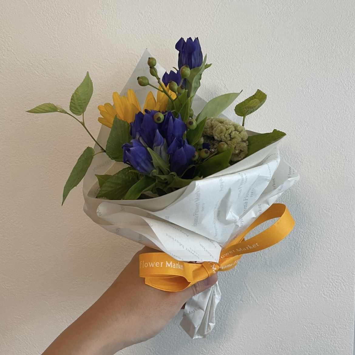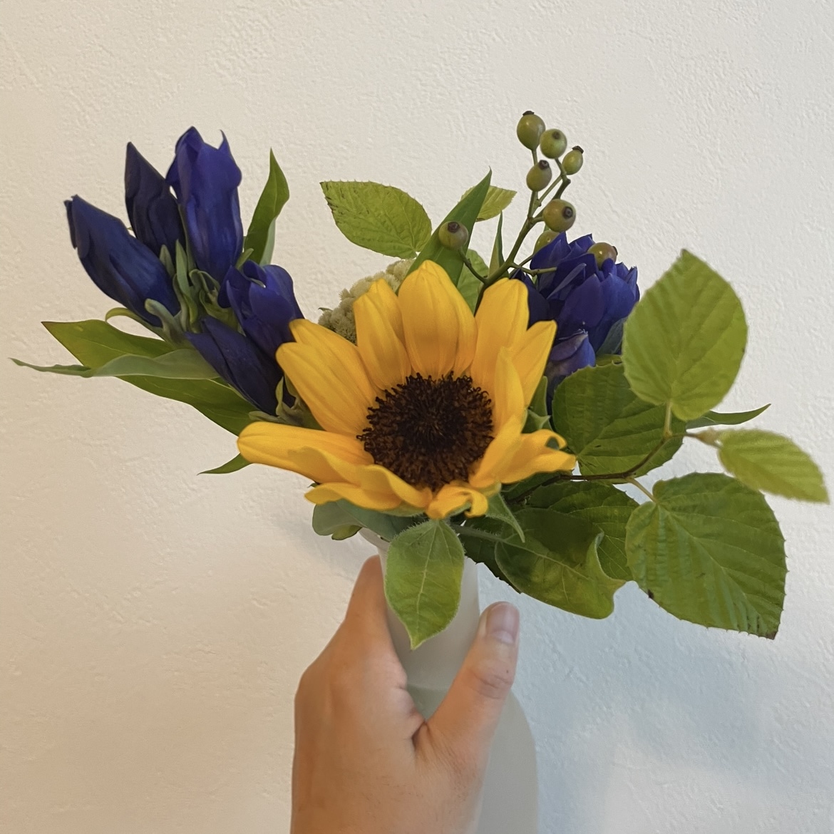 「長男くんと次男くんでお花を選んだの!長男くんは青の花を選んで、次男くんが黄色の花を選んだの」