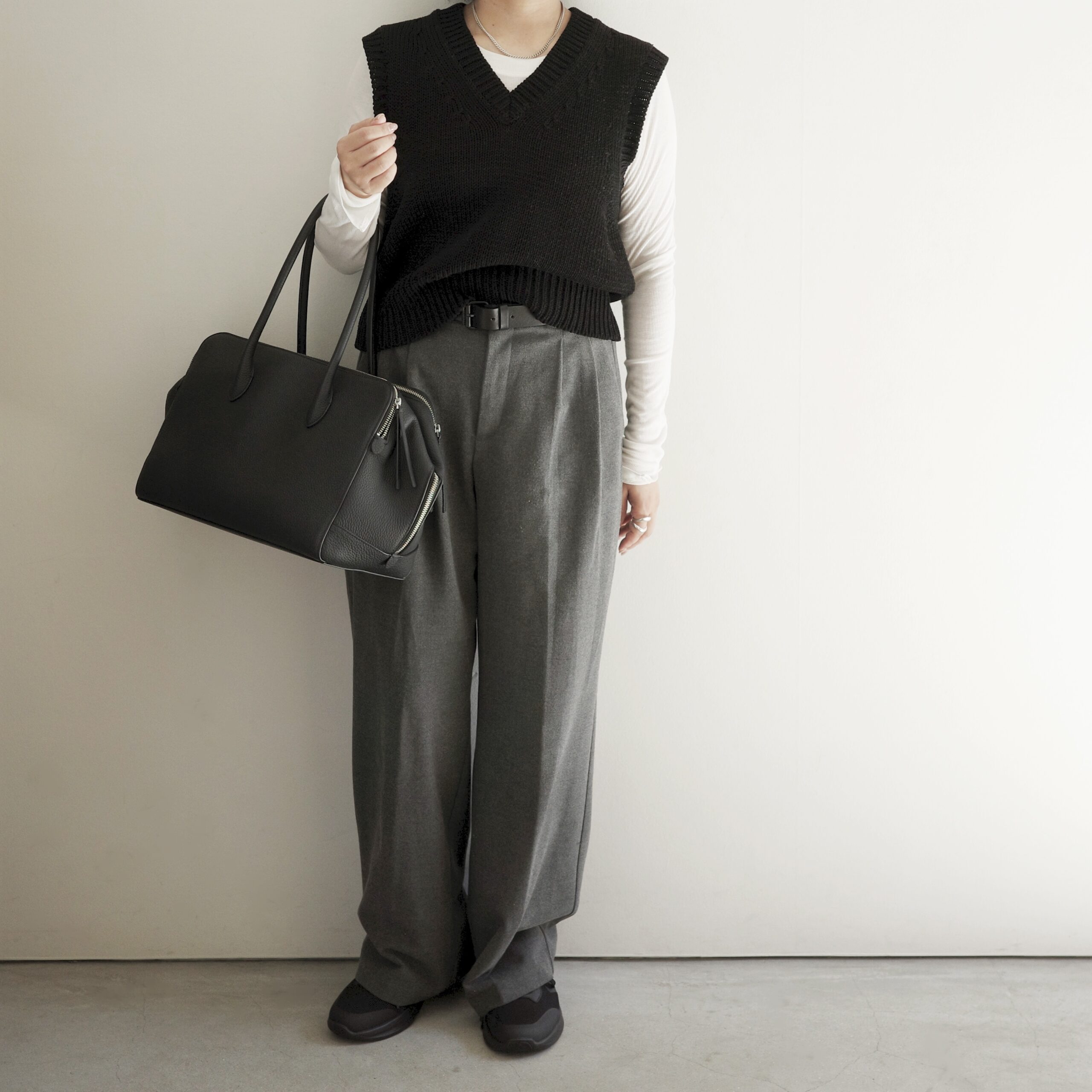 グレーのワイドパンツとスニーカーとの組み合わせが、ちょっとおじさんっぽいところも地味に好き。