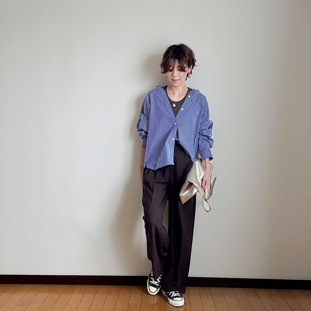 ストライプシャツって、ピンキリで販売されていると思うので、安く済ませることもできちゃいますよね。でもこのシャツはとにかく上質さが表れているのでお値段に見合い、納得!