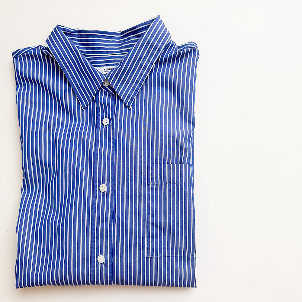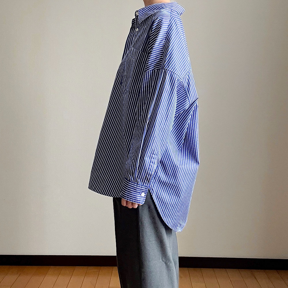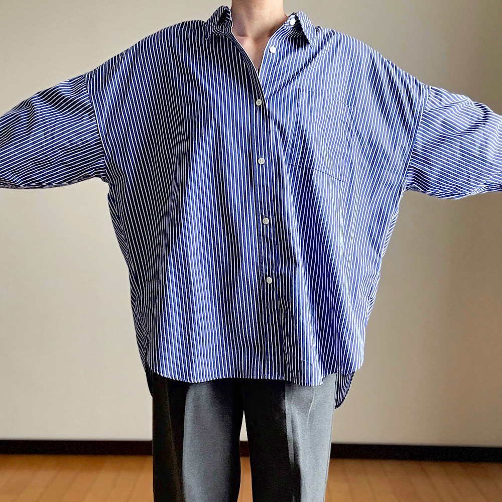 もともと1枚ブルーのストライプシャツは持ってますが、だんだん手に取ることがなく手放そうかな予備軍に入っていて、ストライプシャツはもう買わないかも…と思っていたところに、まさかの!