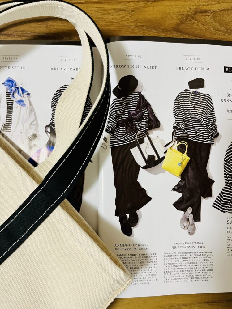 トートバッグ購入はずっと迷っていたのですが、先月号のLEEのこちらの着回しコーデで使われていたところを見て、「あ〜やっぱり素敵!」と一押しされました!