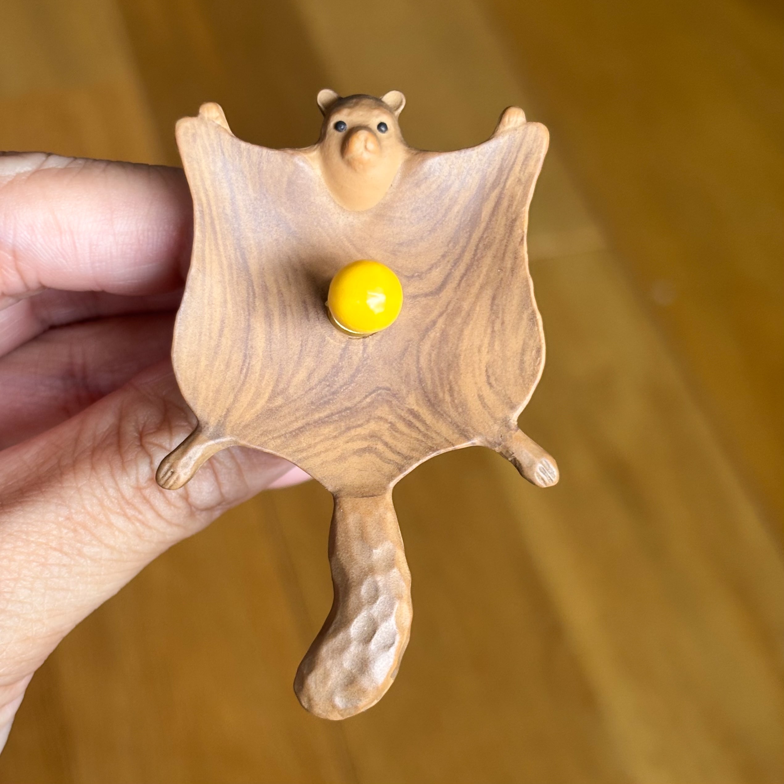 「ムササビランプ」いつか実部を見てみたい作品のひとつ。木目や彫り跡まで再現されています。これにはボールチェーンがついていました。