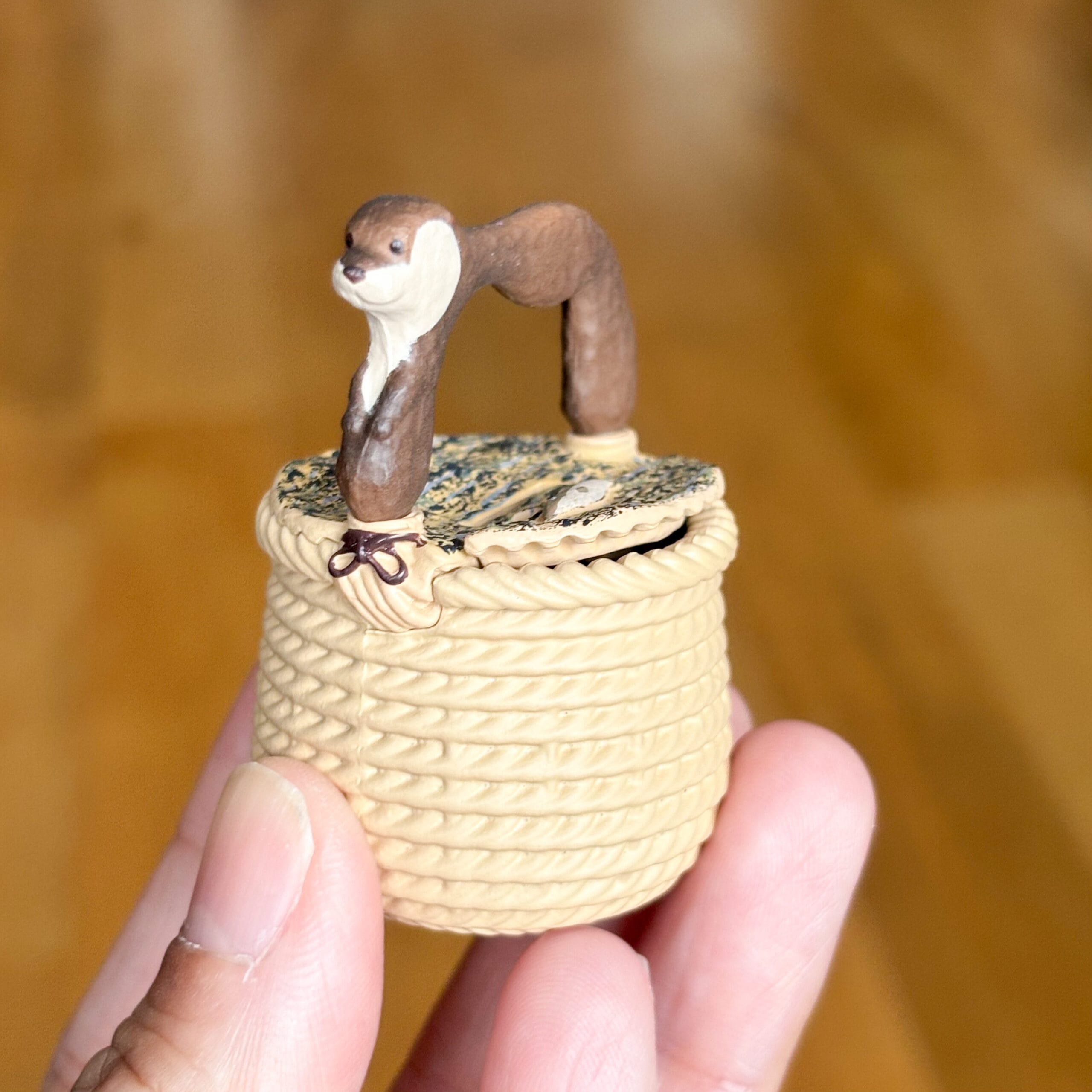 「カワウソバスケット」カワウソのお顔がかわいい!バスケットの蓋が開きます。