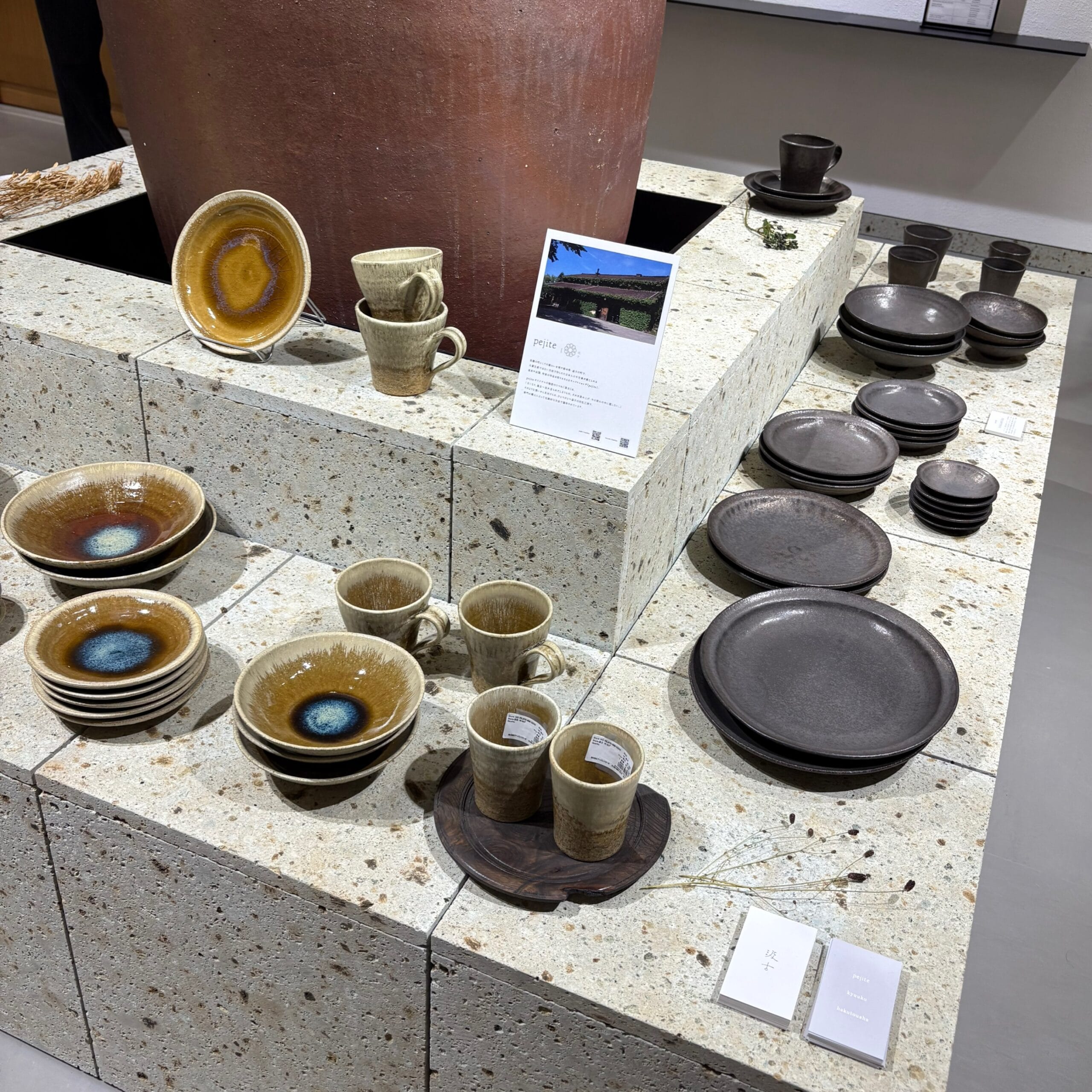 pejiteさんは、益子陶器市や有名陶器市でも大人気の器を扱うブランド。お値段もお手頃に職人さんのこだわりの一枚に出会えます。店内の雰囲気にもぴったりでした。(「pejite」は期間限定の展開)