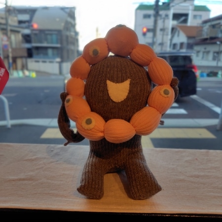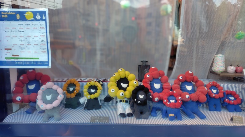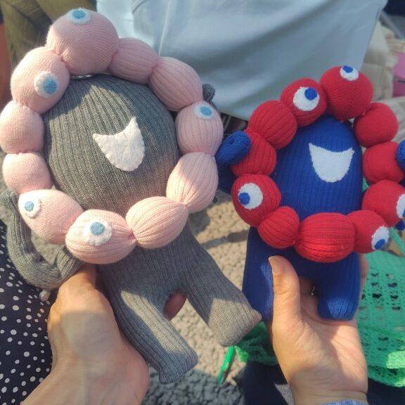 私の行きつけの手芸屋さんで密かなブームとなっているのが、オーナー考案の手作りミャクミャク人形。