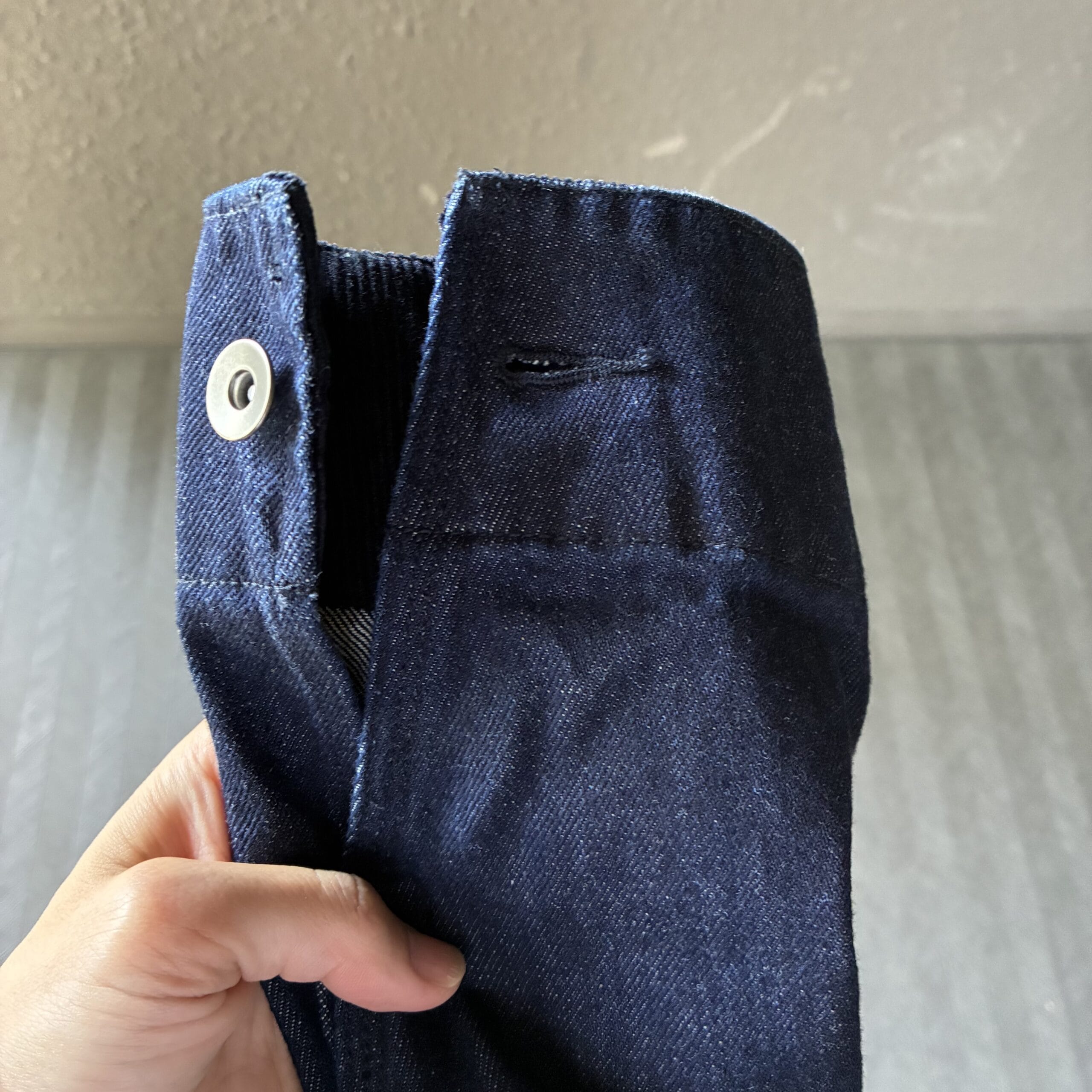 カラーは、4色展開、購入色はNAVYです。インディゴデニムのようで、とてもお洒落。