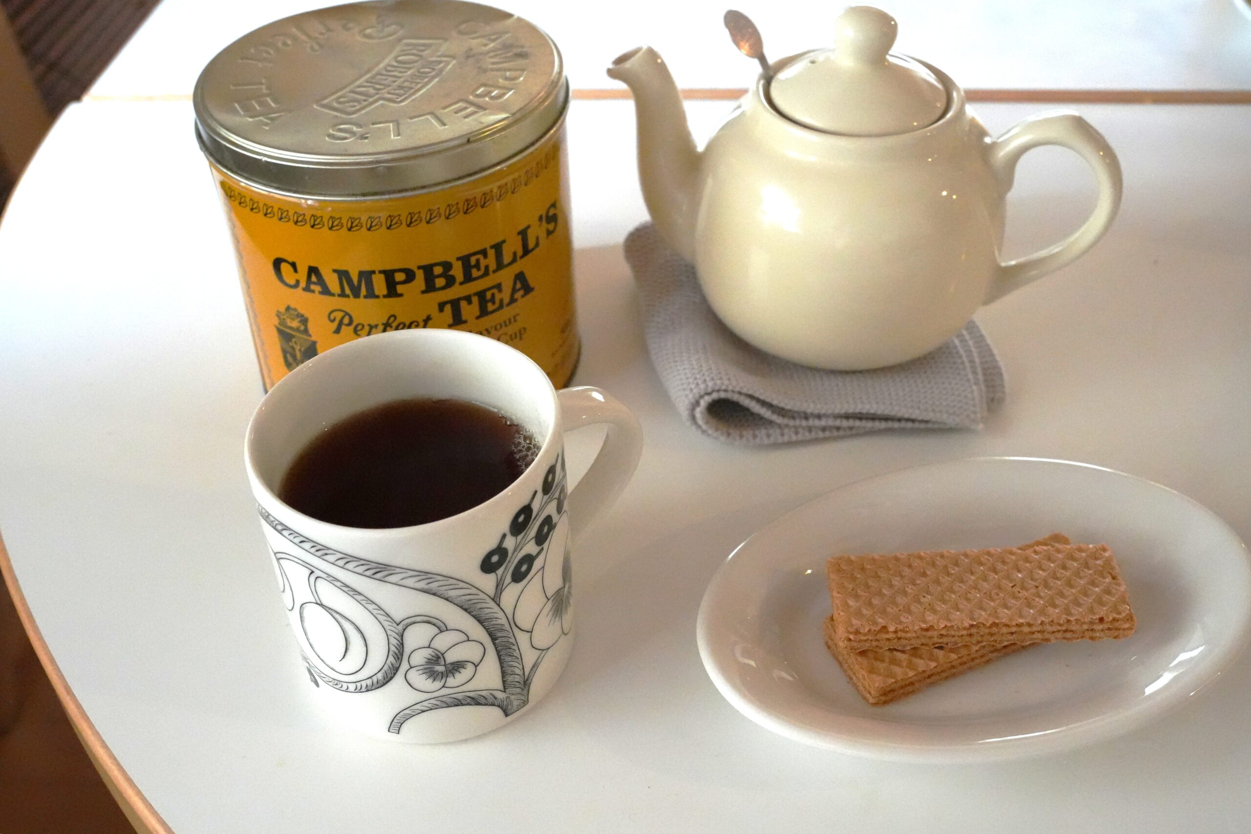 プライス&ケンジントンのティーポット、キャンベルズパーフェクトティーの紅茶、ブラックパラティッシの大きなマグカップ…。どれもものすごいお気に入りですが、この数か月は出番がなく棚に眠っていました。なのでお湯を沸かす間これらをいそいそと準備する段階で、すでにうれしい&楽しい!