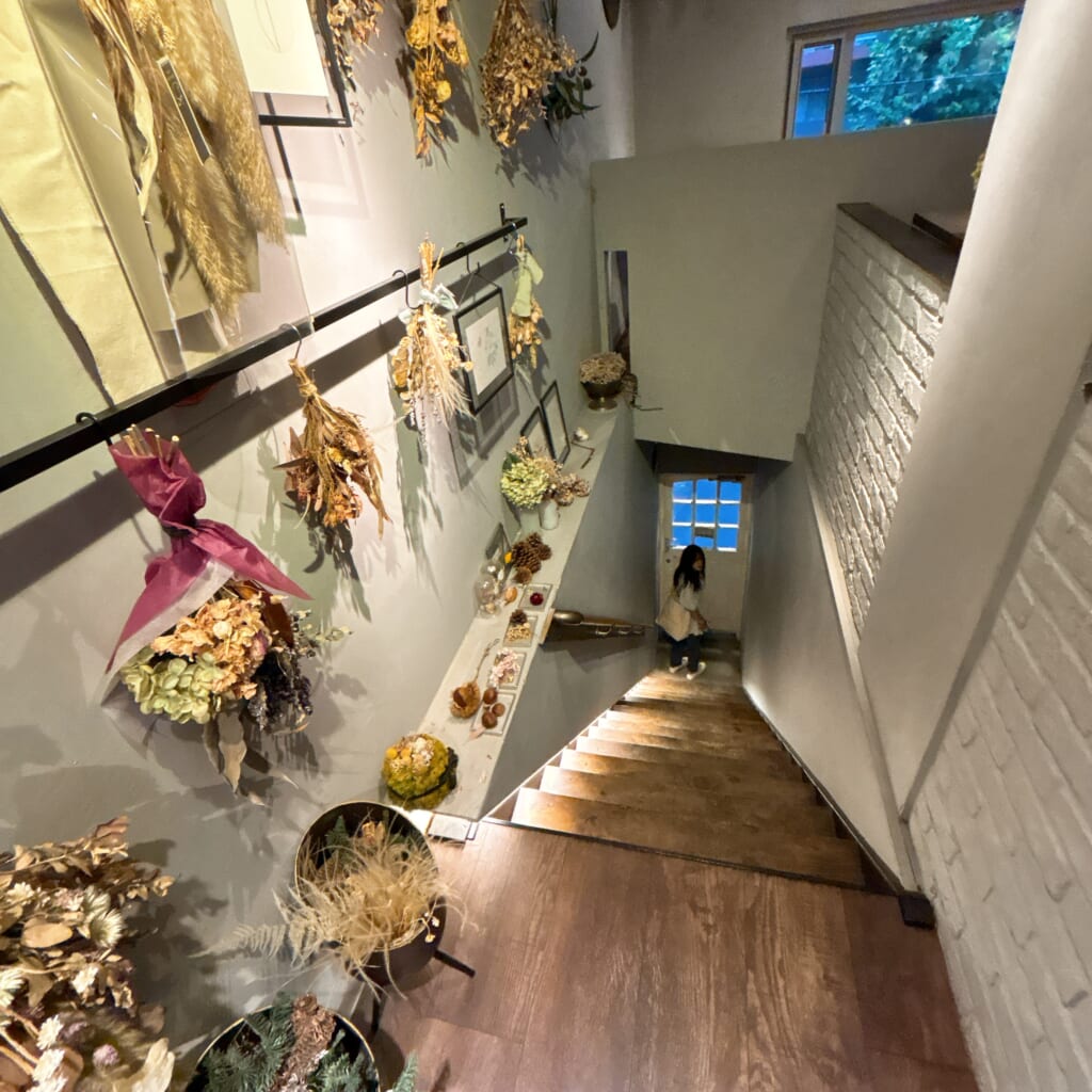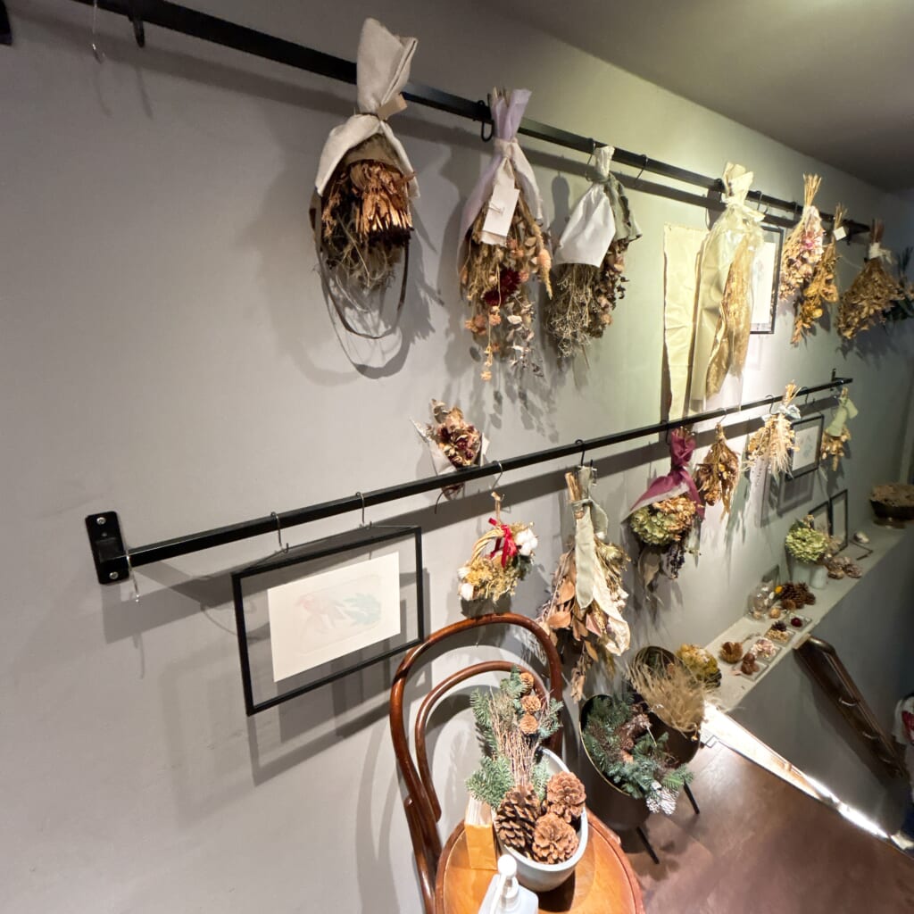 先ほども載せたけれど、入り口から素敵なドライフラワーがたくさん飾ってあって雰囲気がいいの。可愛い店内にここからもうテンションが上がるぞ。
