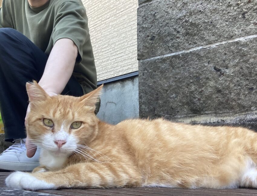 この茶トラの猫ちゃん、いつもこの辺りでゴロゴロしてます。