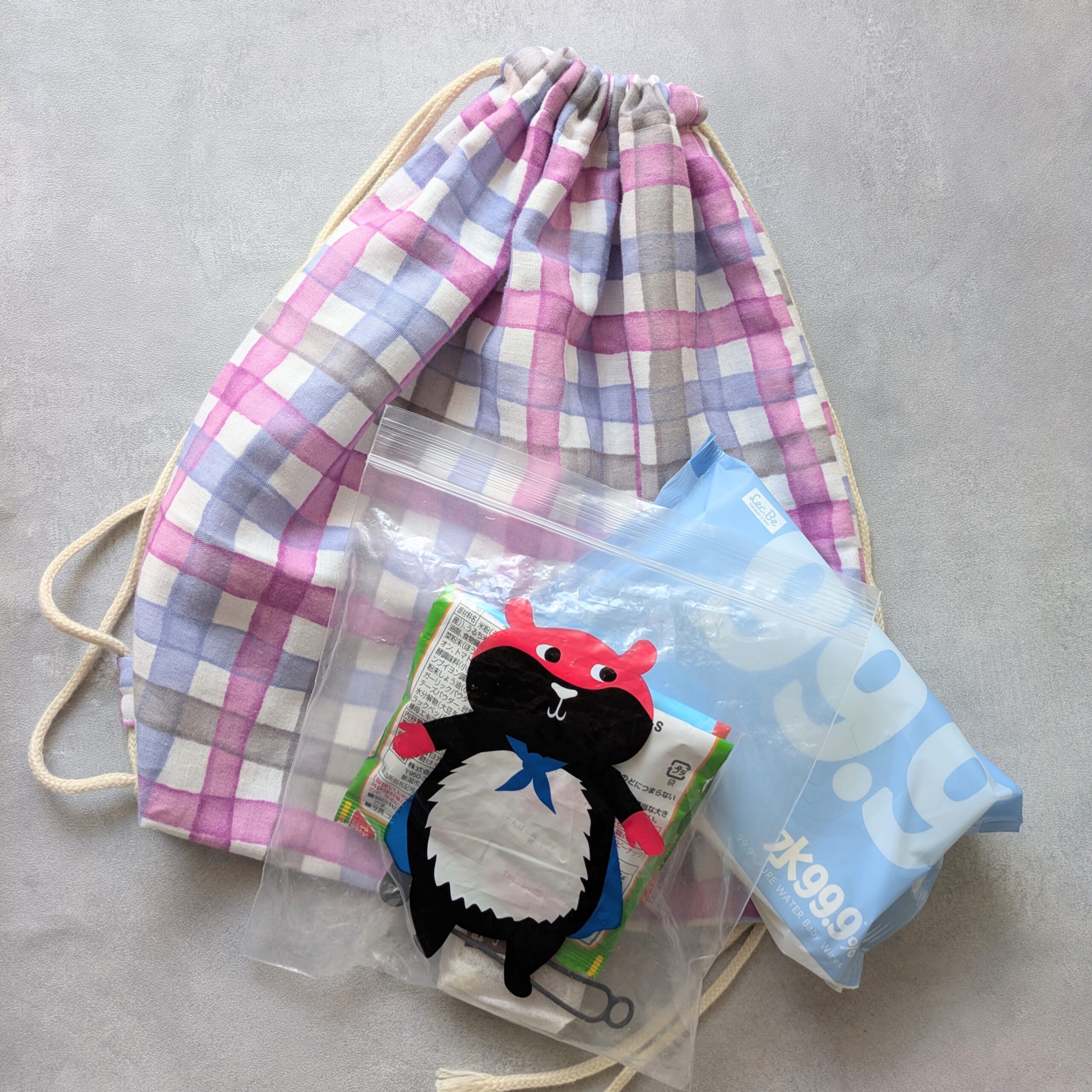 おむつ&おしりふきを入れたり、おやつを詰めたり。