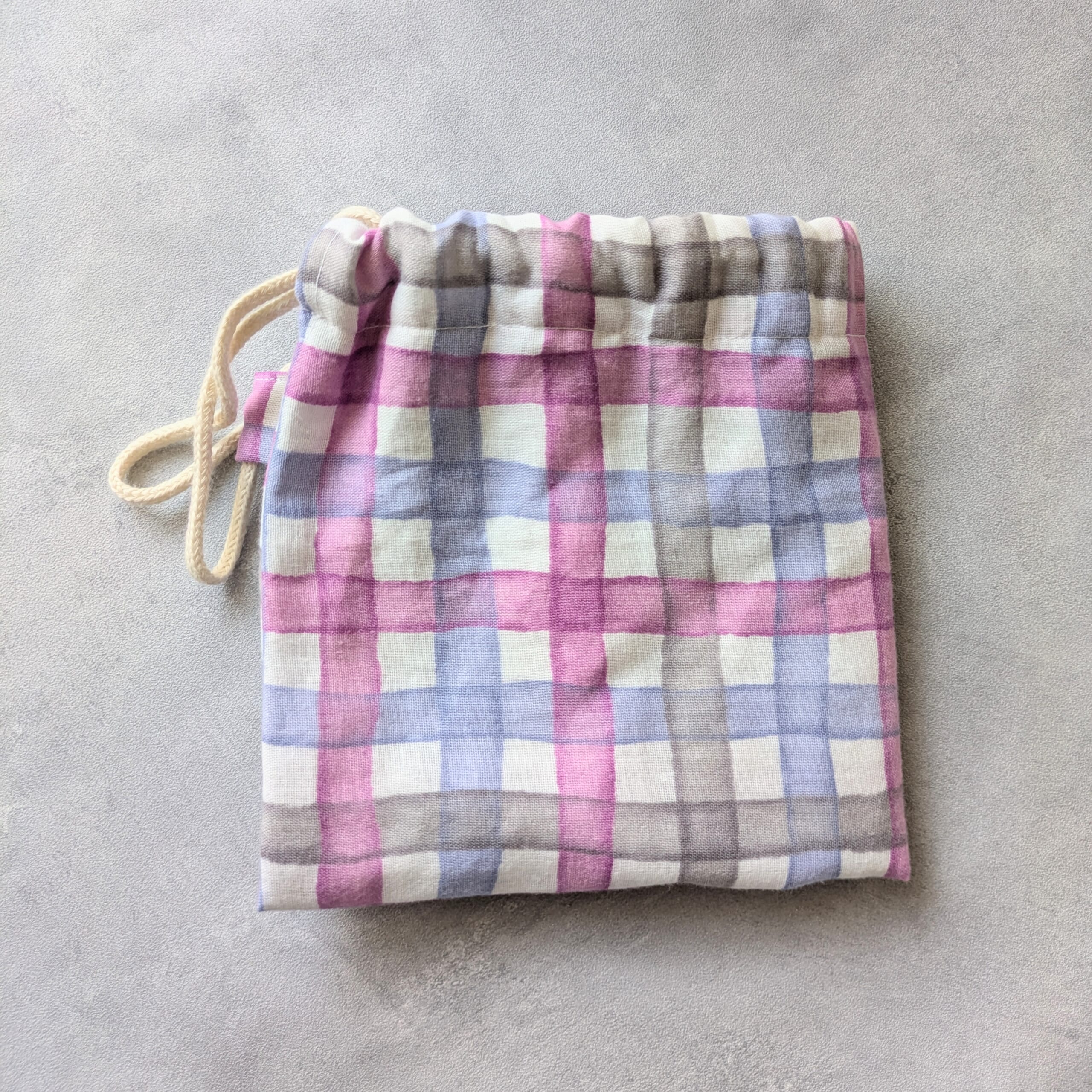 凝ったつくりのリュックもいいけれど、軽くてすぐできるものにしよう、ということで巾着リュックに。
