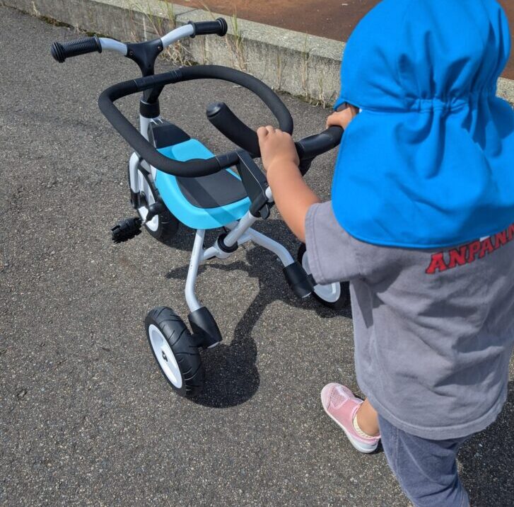 5歳の姉はまだ補助輪付きの三輪車に乗っていますが