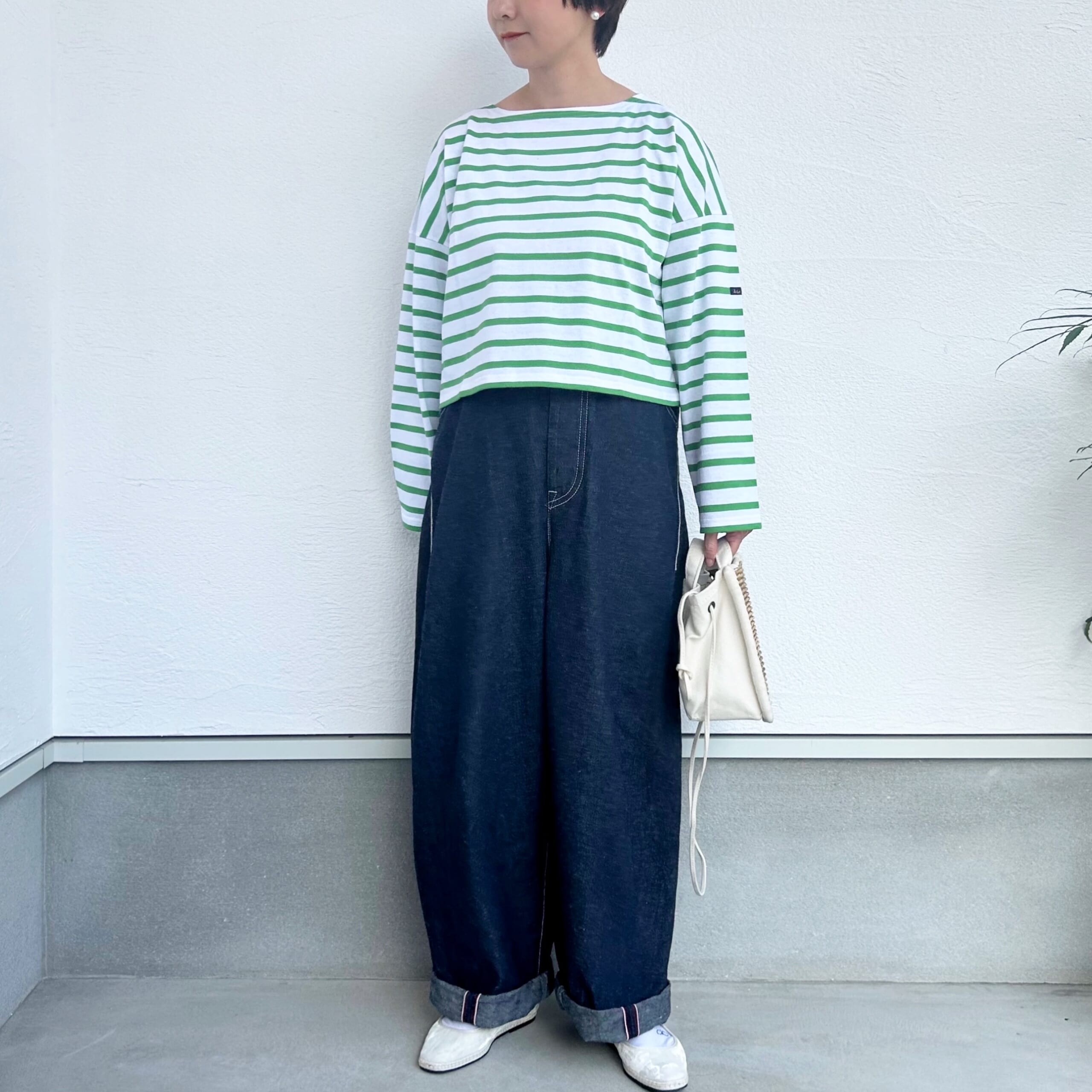 着丈短めなので、ワイドパンツやスカート合わせどんなボトムスとも相性◎