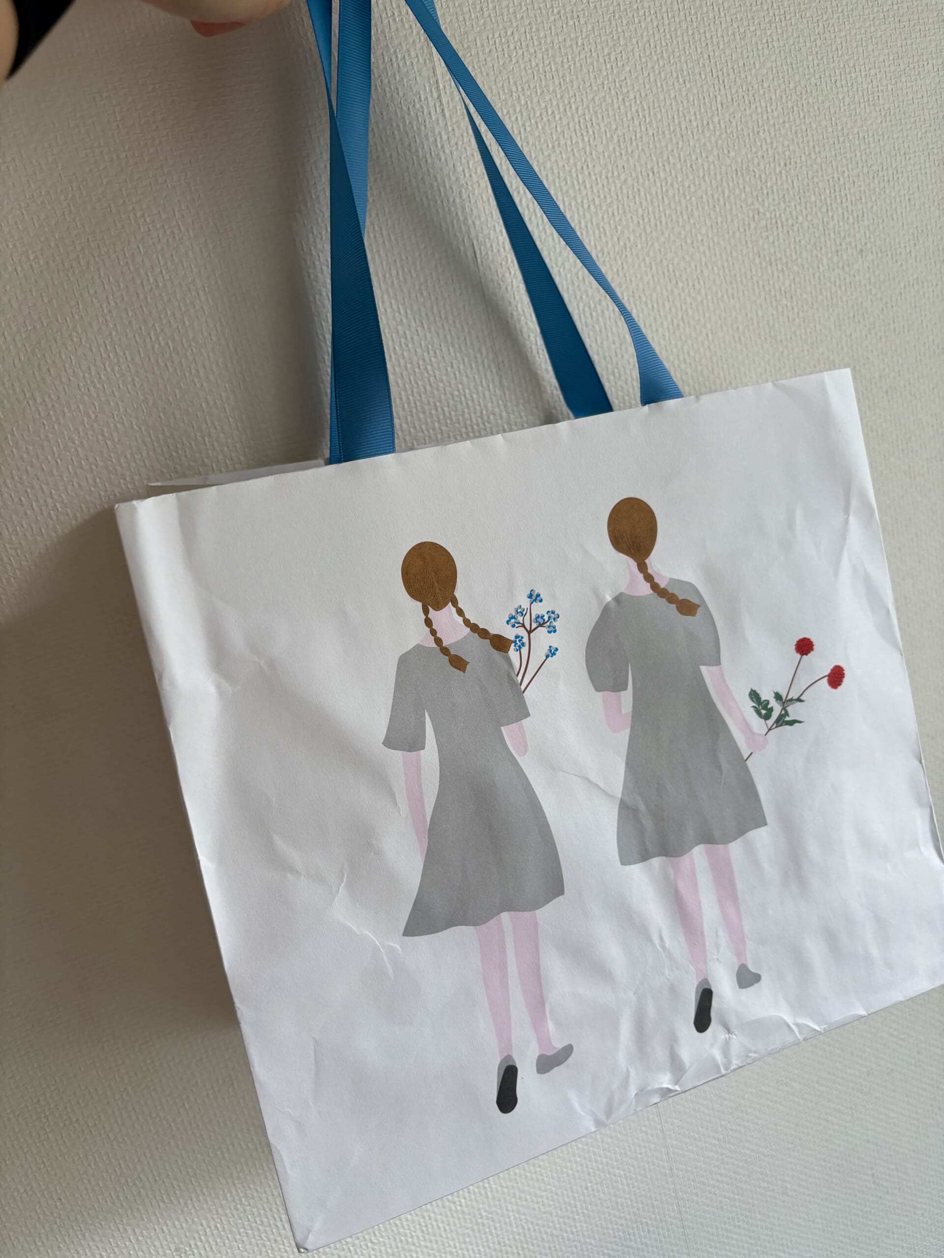 持ち運びでガサガサになっちゃったのだけど、このショッパー両面可愛すぎません?