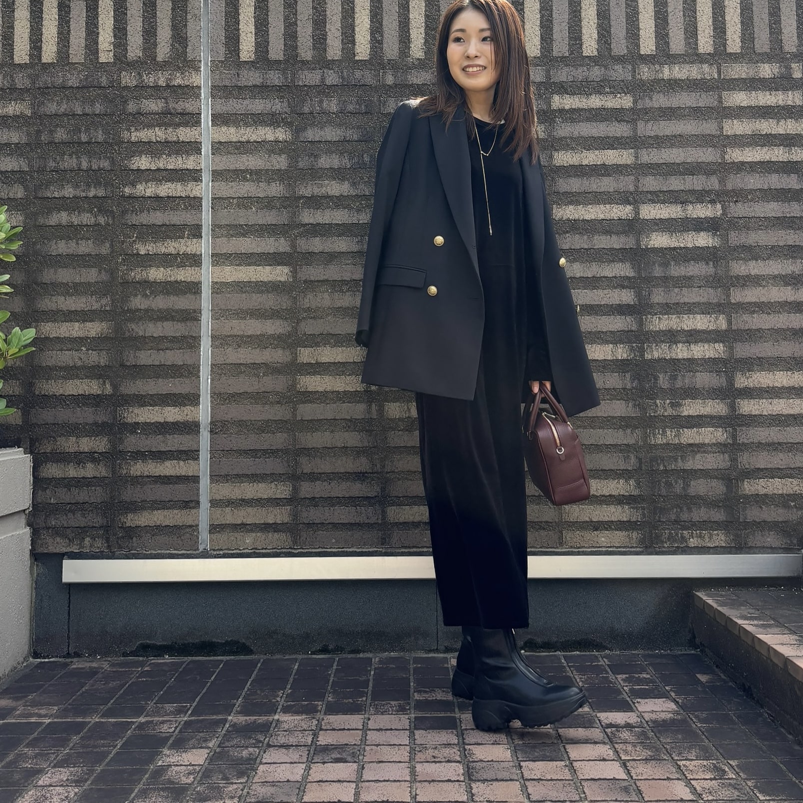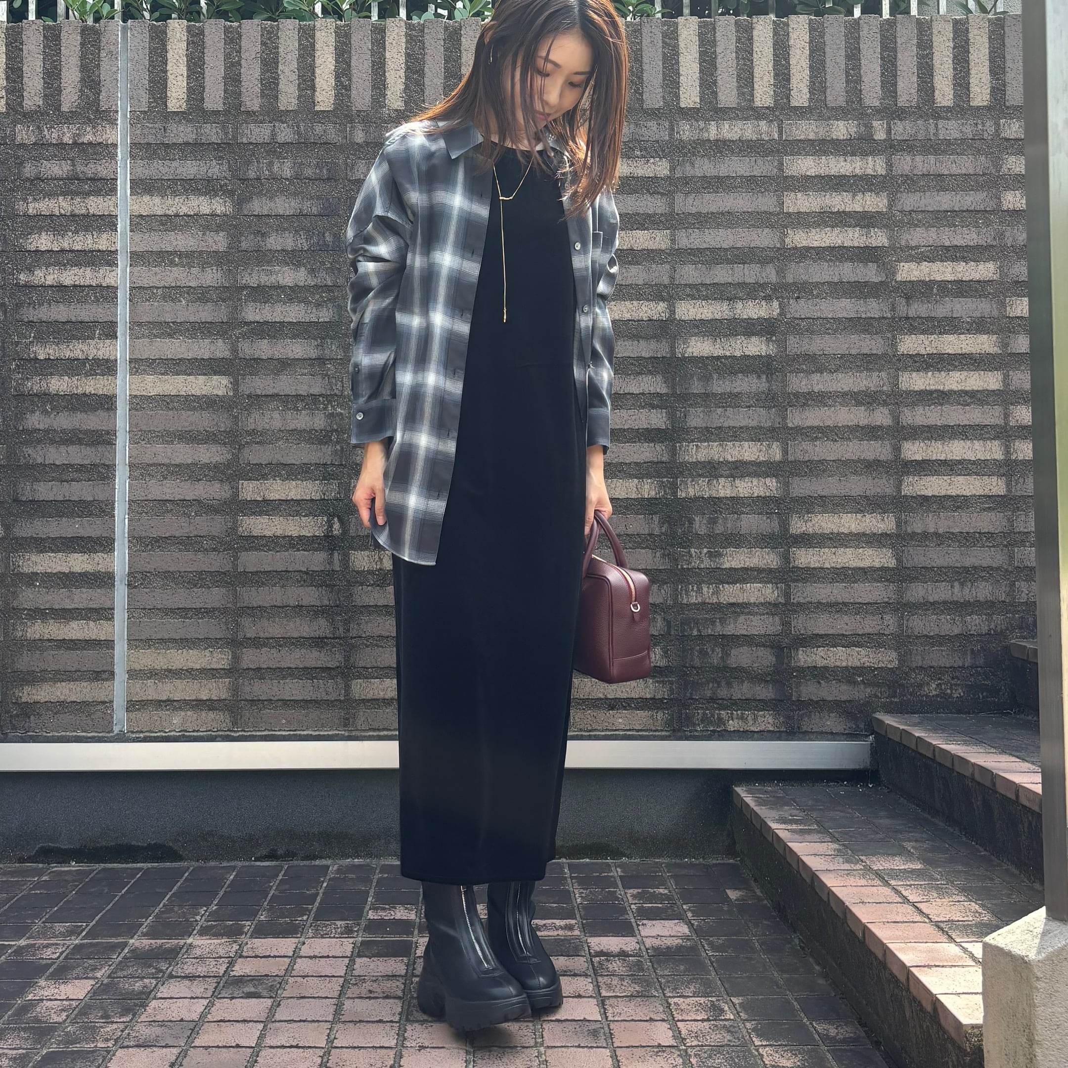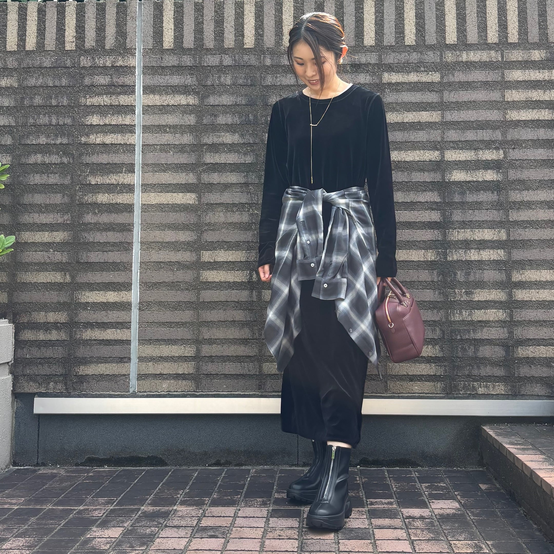 同じくトレンドのベロア素材のワンピに合わせてみました。