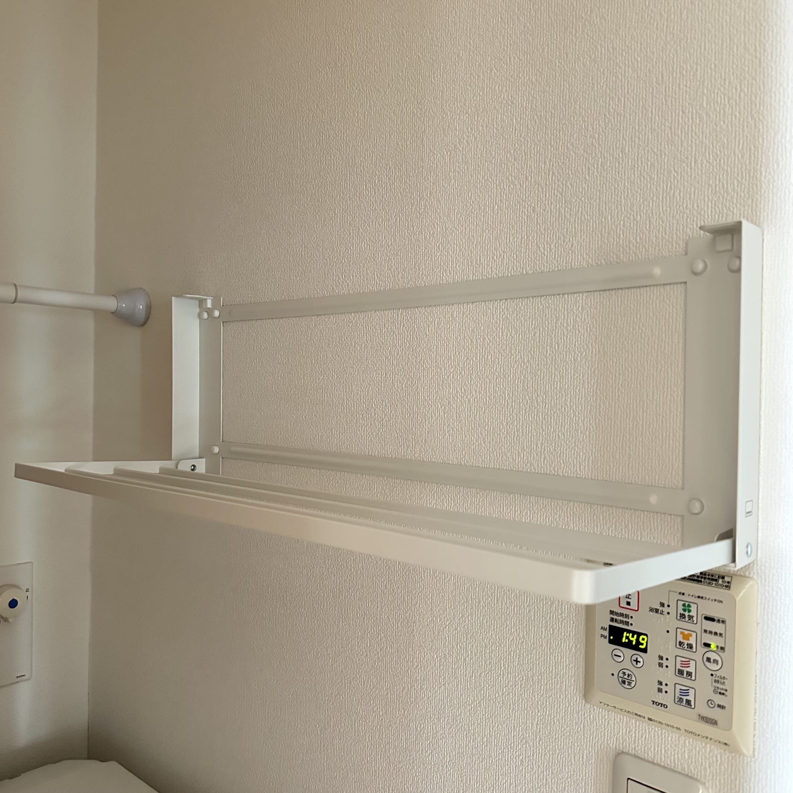 このラックを洗濯機上部に取り付け、使う時にタオルを取っていくシステム。そして洗濯乾燥完了したタオルを取り出しその場で畳んでラックへと戻します。この動線が完璧すぎて◎