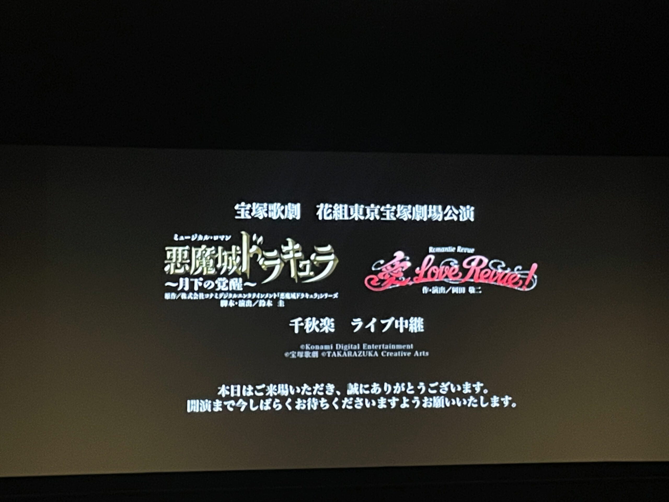今回のように、既に生舞台で1度は観劇したものを、ライブビューイングで改めて観る…というパターンは初めてです!それほどまでに、お芝居『悪魔城ドラキュラ』と、ショー『愛,Love Revue!』が好きになってしまって…!!それに加えて、生観劇は末っ娘不在(平日で小学校に行っている間)で、後から「私も永久輝せあさんが観たかったよぉ…!!」と嘆かれたので、ライブビューイングでお茶を濁そうという作戦です…( ̄∇ ̄)