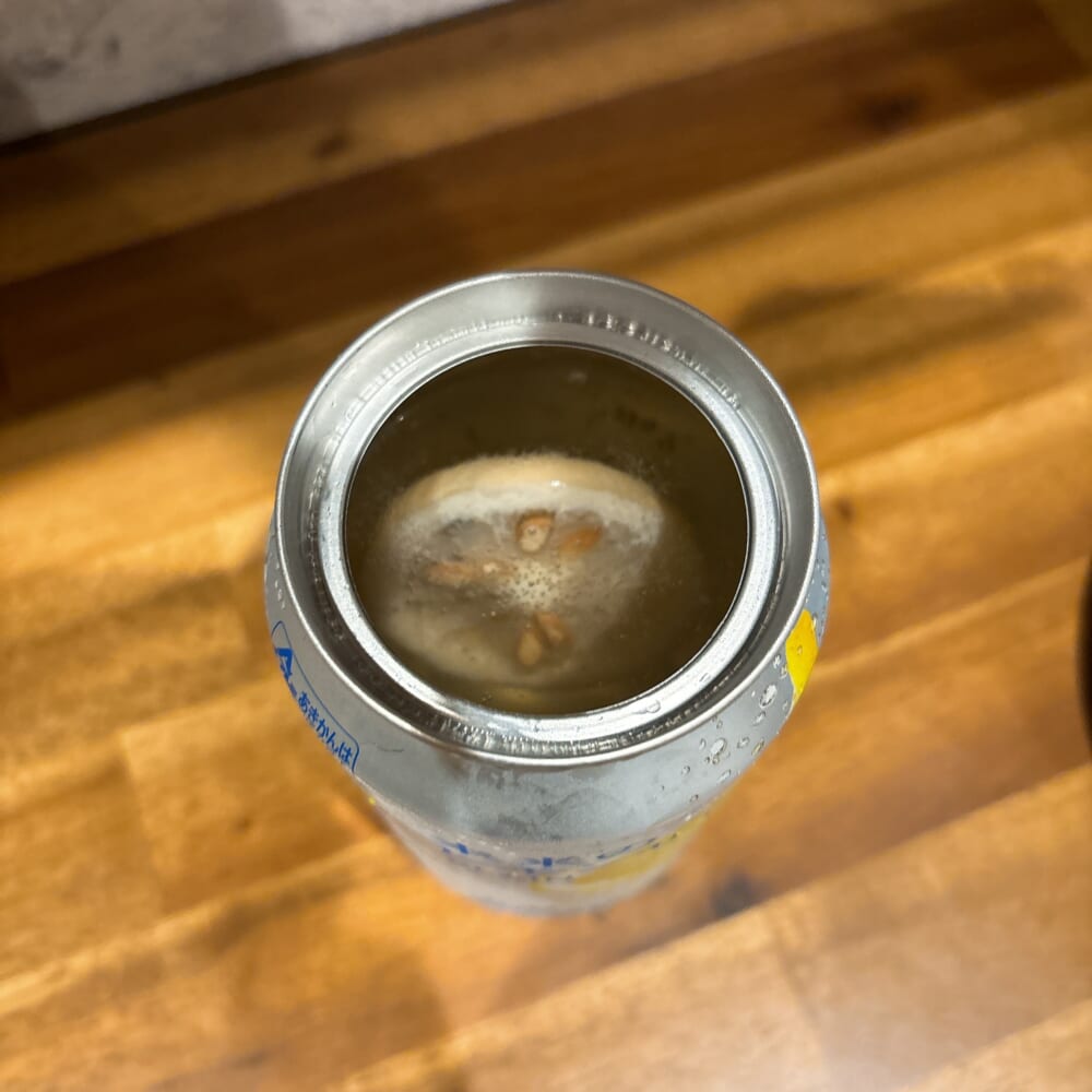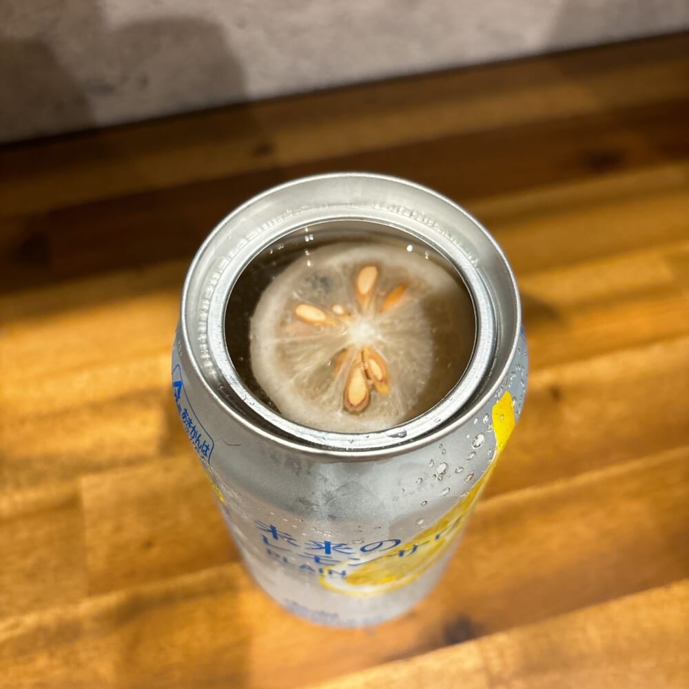 缶がフルオープンタイプなので、ダイレクトにレモンサワーの香りを感じてそれがまた美味しい!レモンサワーに漬かっていたレモンも美味しいんだよねぇ…もぐもぐ