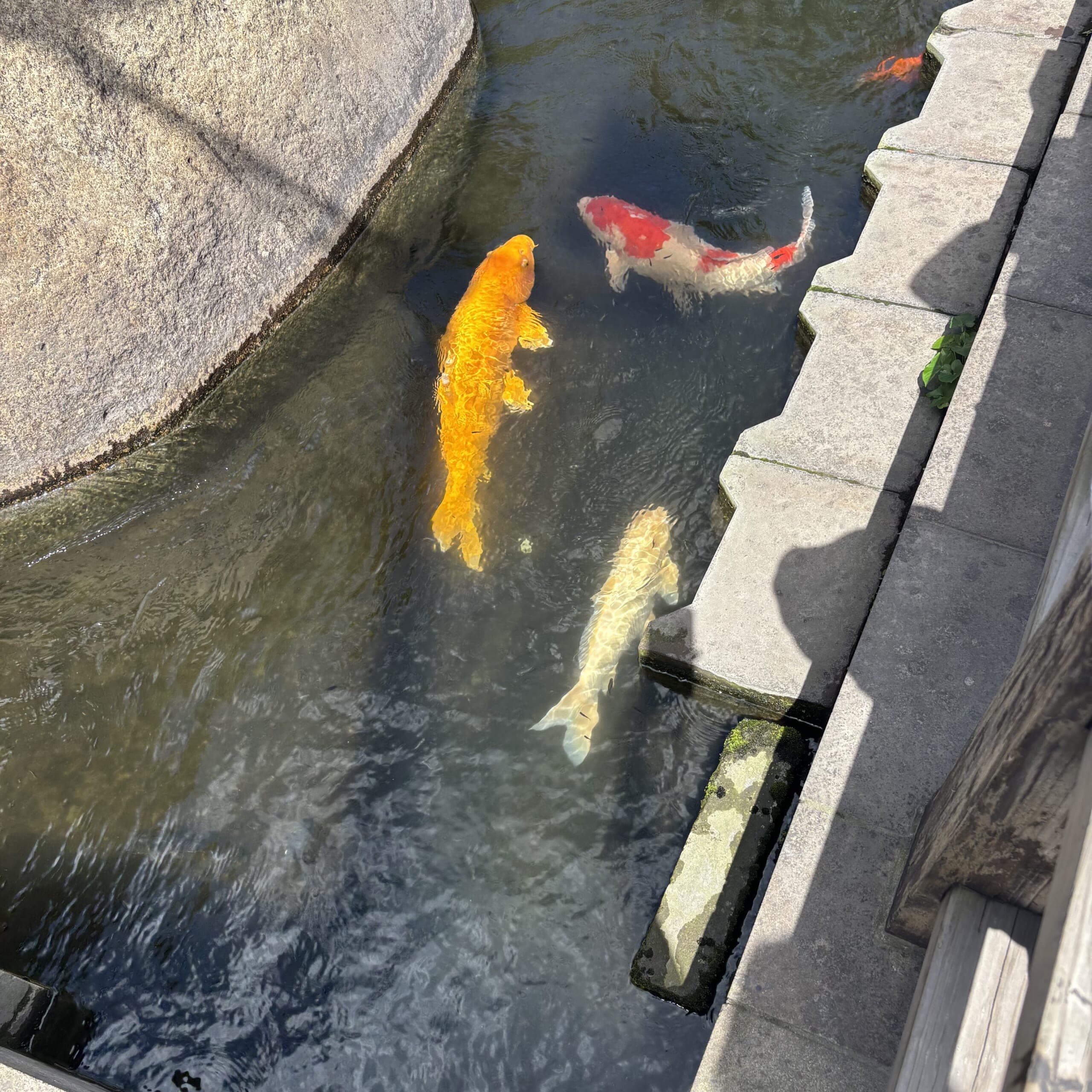 道路脇の水路には鯉も泳いでいて、子どもたちも歩きながら大はしゃぎ!鯉の数と大きさにも驚きます。