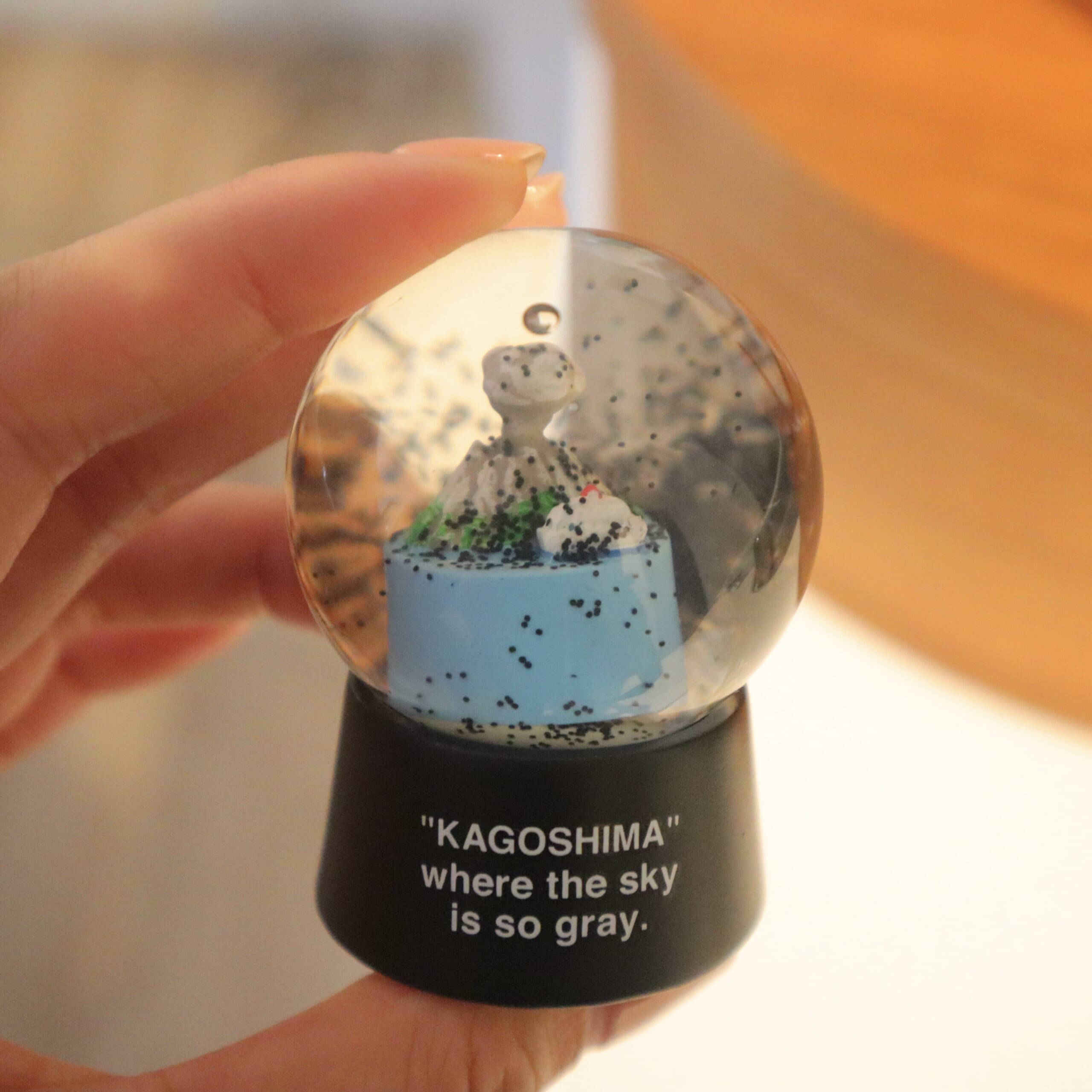 OWLさんで見つけてつい手に取ってしまった桜島の火山灰のスノードーム。