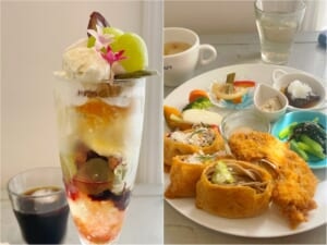 9月のパフェ活。シャインマスカットParfait2025&ハーブのお稲荷さんveganプレート。