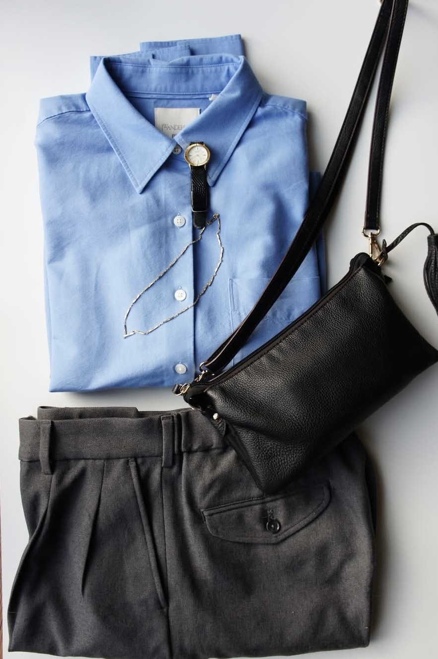 GUのグレーのワイドパンツはセンタープレス加工で昨シーズンのものを。秋になって履く日が来るのを楽しみにしてました。