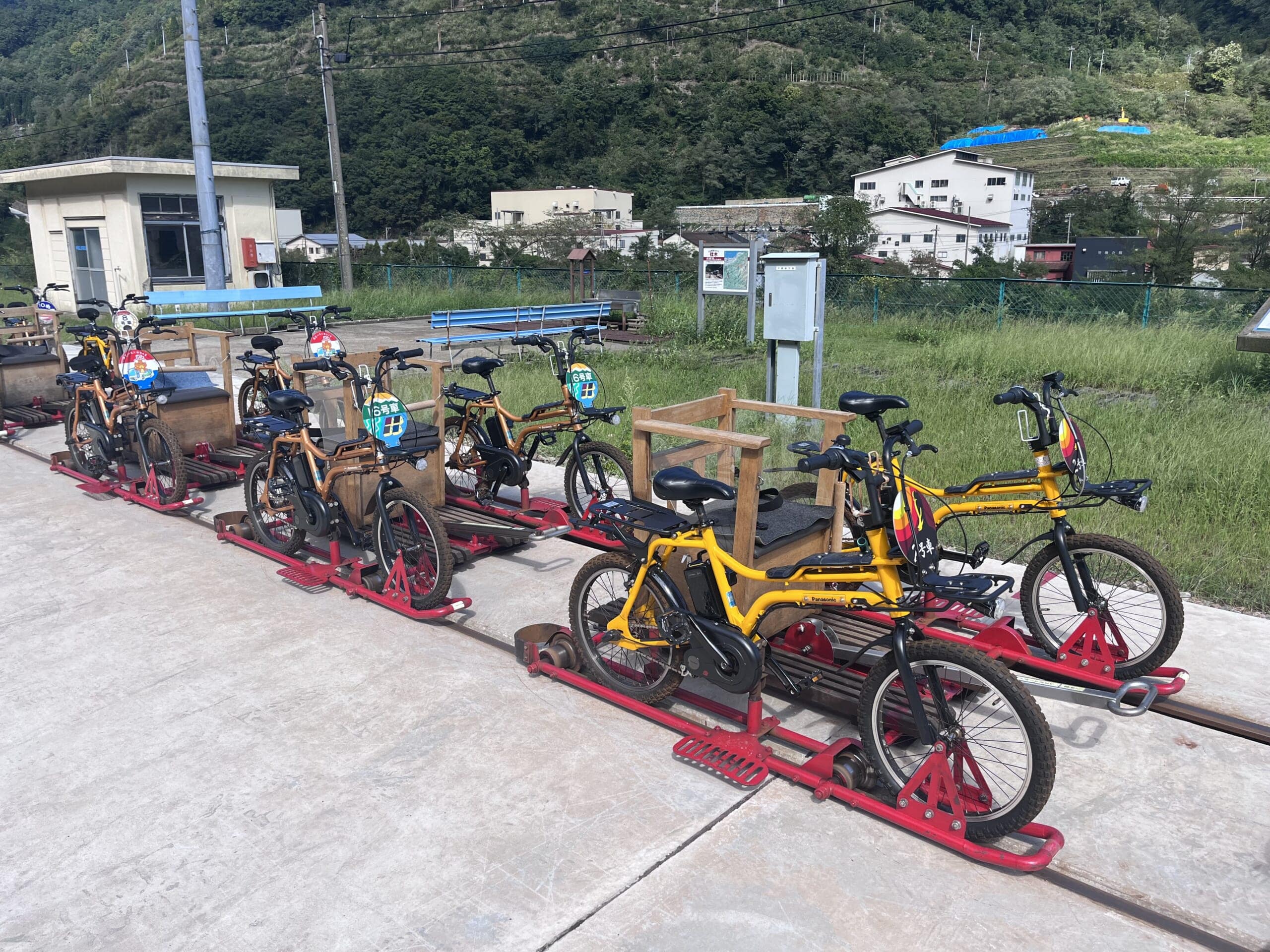 自転車と廃線後の鉄路を組み合わされたもので、レールの上を走ります。