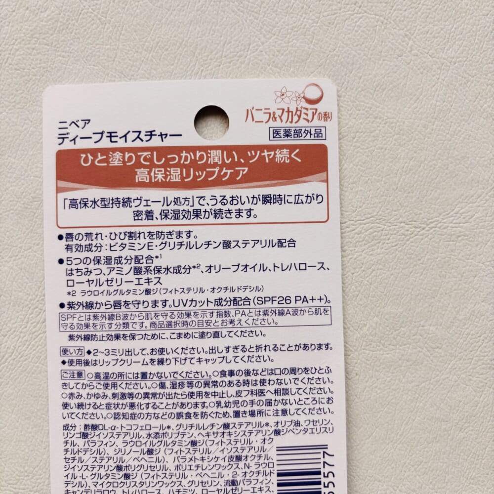 唇だって日焼けするから!《かぶり買い》ニベア ディープモイスチャー リップ バニラ&マカダミアの香り