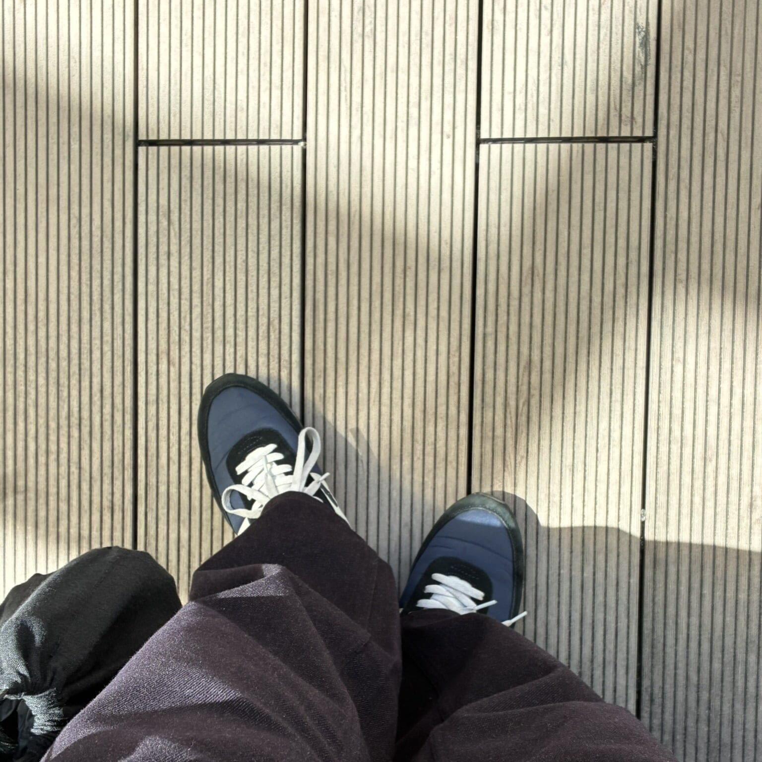 スニーカーはローテクのシルエットが気に入っているKARUFU(カルフ)。数年前から愛用していますが、レトロなシルエットがトレンドと相まって、今、また気分です♪