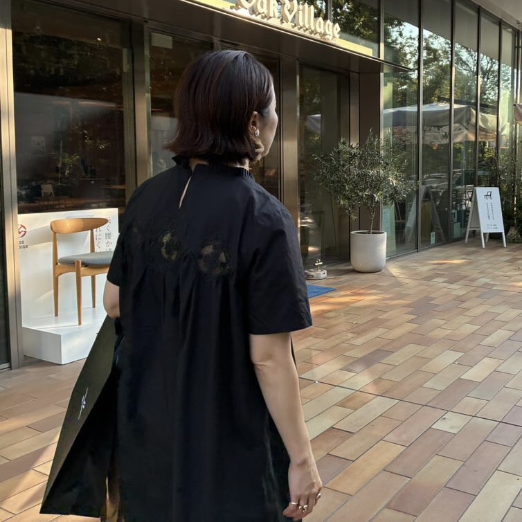 この日は潔くネイビーワントーンでまとめました。半袖ニットは活躍する季節は短いものの、1枚で着映えるディテールが入っているので、ワントーンでまとめてもつまらない印象になりません。