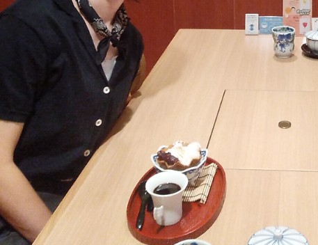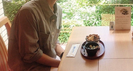 この時、半個室だったので記憶がすごくあって、お気に入りのMARGARET HOWELLの半袖カーデに同ブランドのペイズリーのスカーフを巻いていきました。