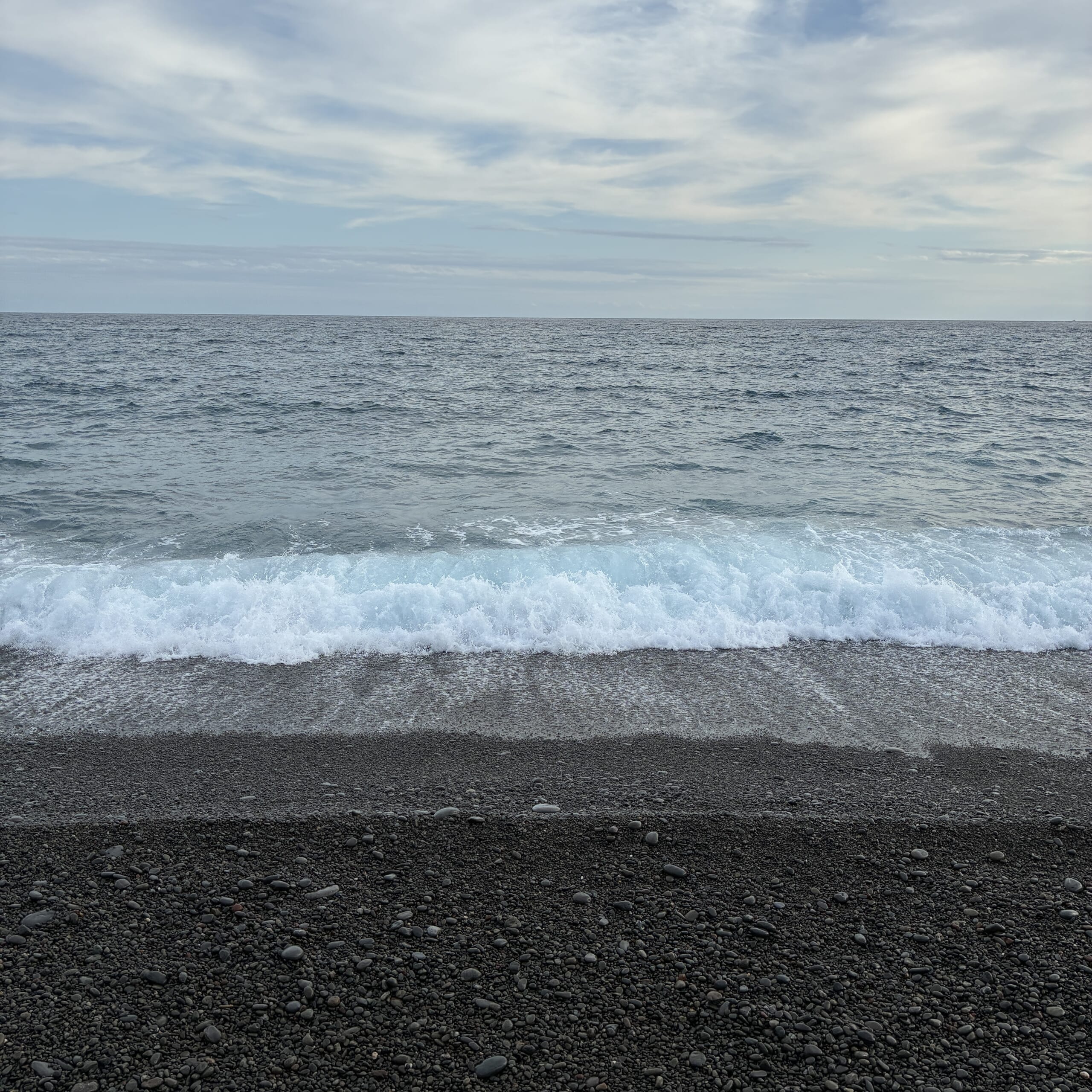 荒っぽく打ち寄せる波にも心惹かれるものがあり、ずーっっと見ていられるほど。一面に広がる青々とした海と地平線がほんとうに綺麗。