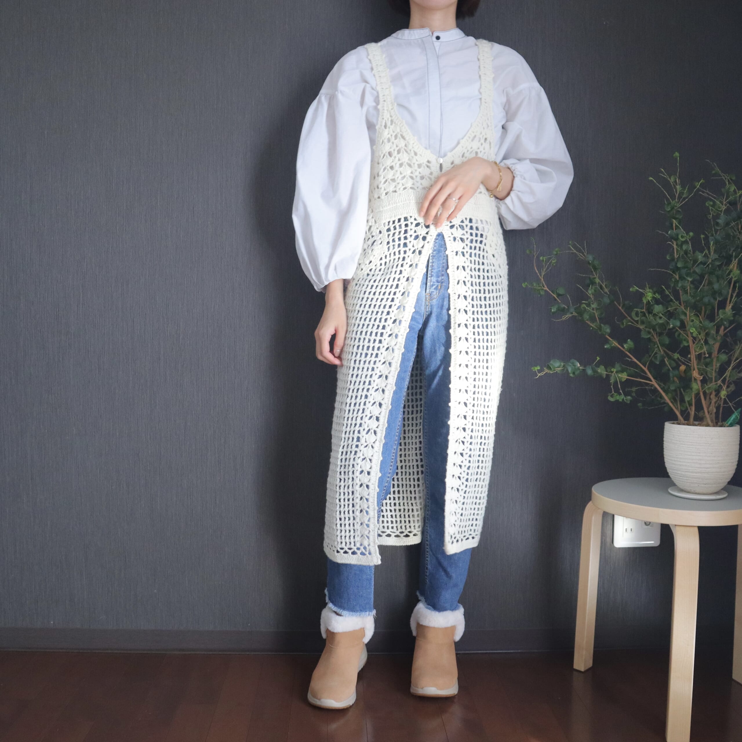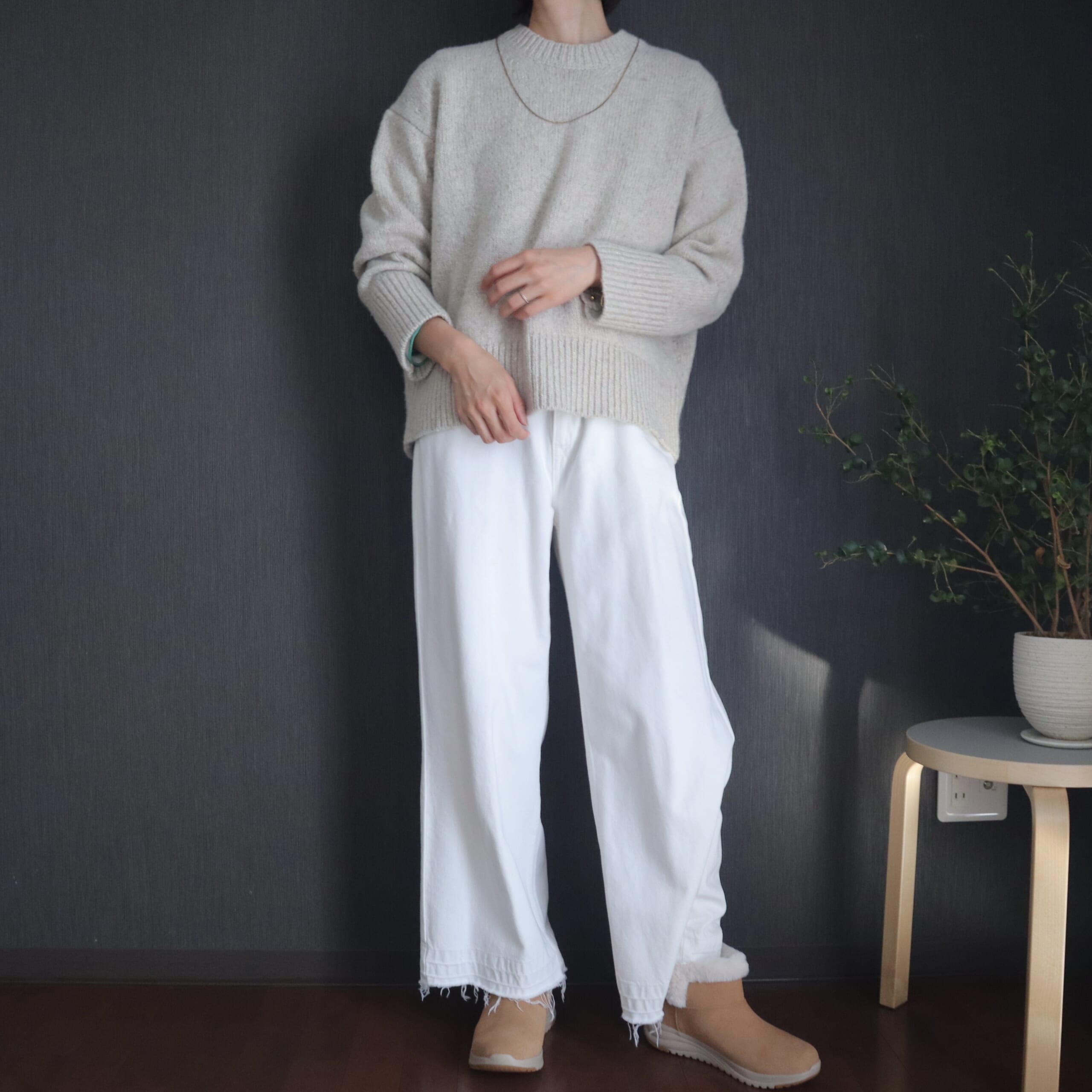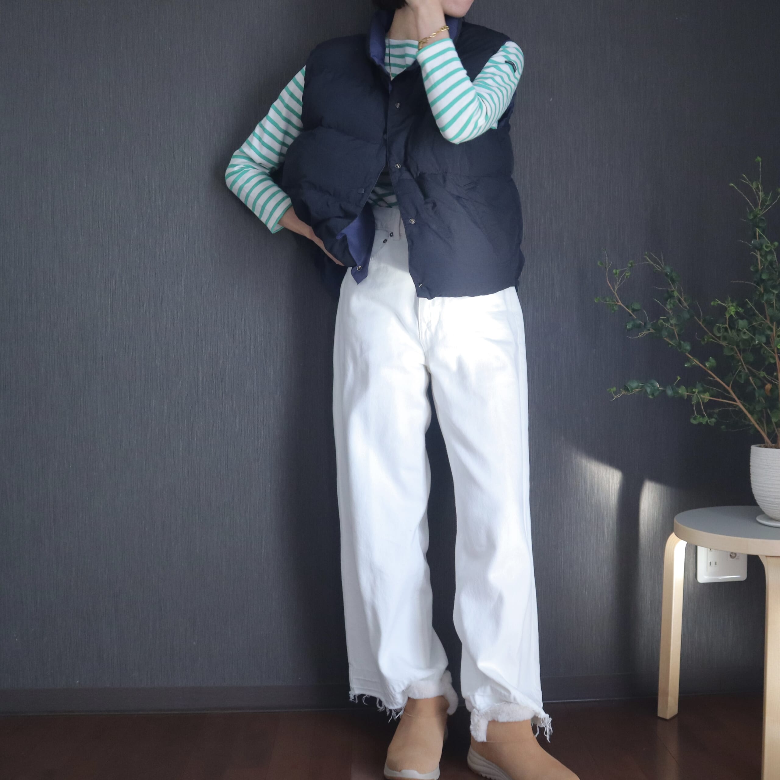 続いてはボトムスを白デニムに変えて淡色でまとめてみました。
