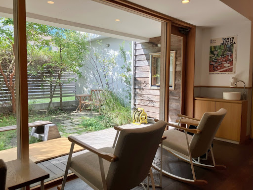 こじんまりとした店内には、中庭と大きな窓があることで開放的な空間になっています。