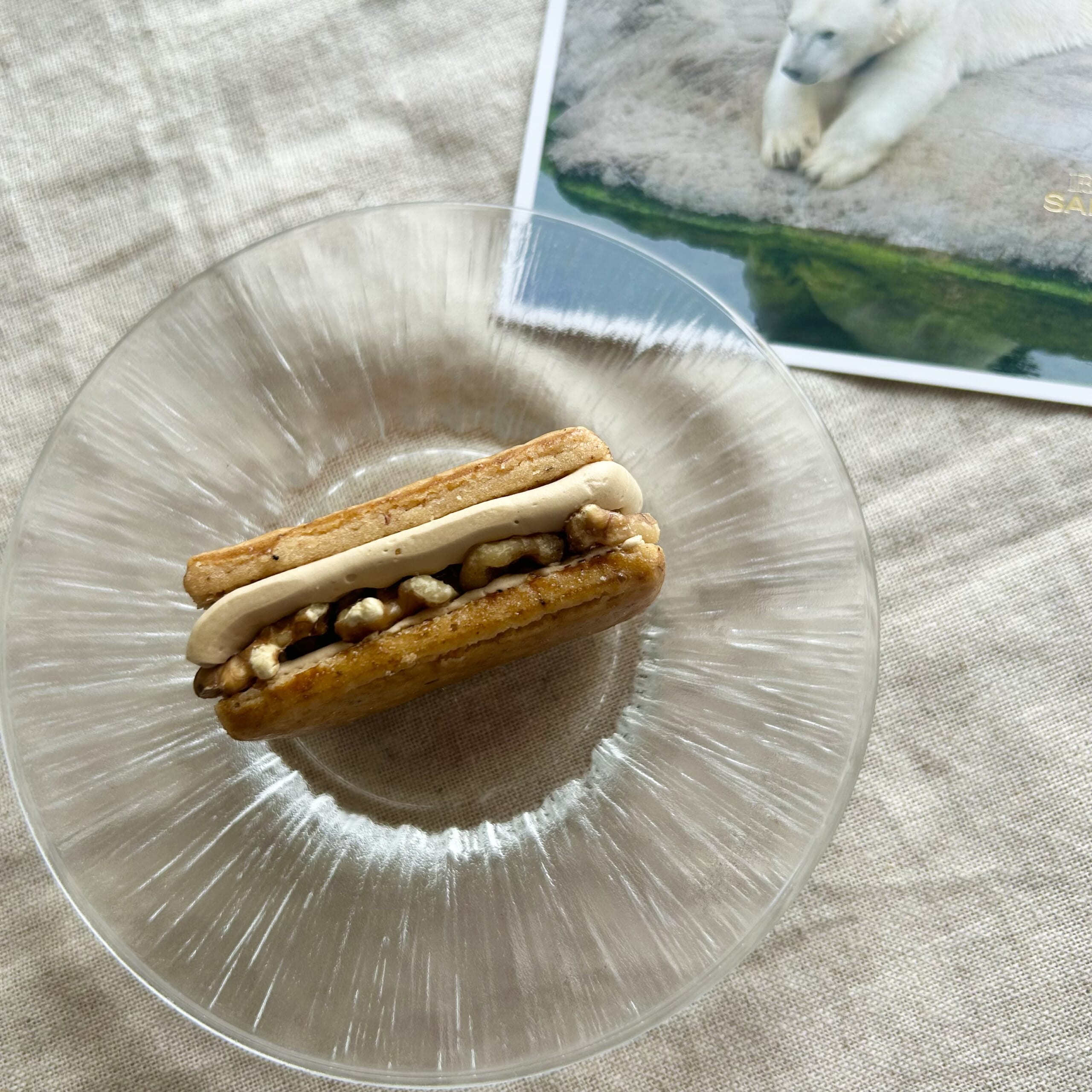9月の終わりに発売されたばかりの秋の新フレーバー。胡桃好きなので迷わずチョイス。 挽きたてコーヒー豆の粉が練り込まれた香ばしいサブレに、コーヒーバタークリームと胡桃がサンドされています。