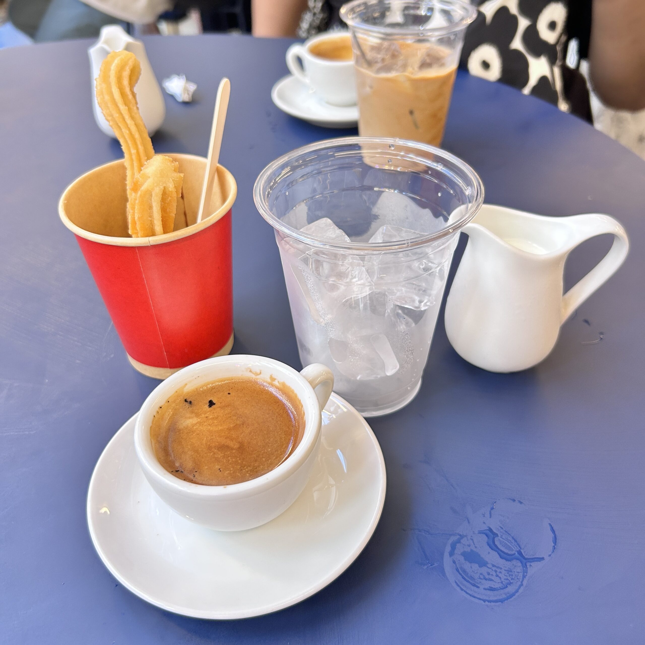 そしてコーヒー!スペイン風?と思ってたら、コーヒーのショットとミルクが。