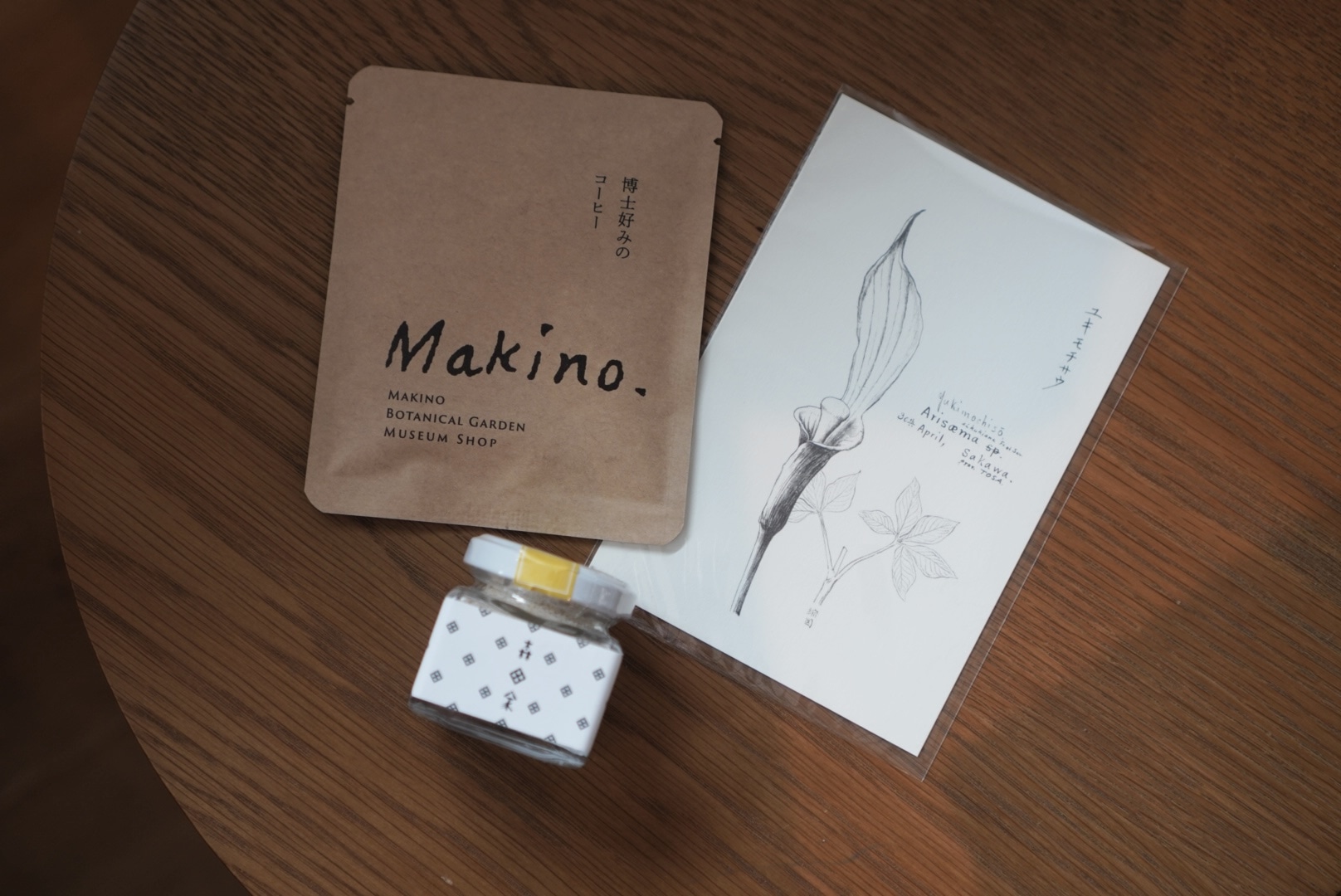 魅力的なグッズがたくさんある中から迷いに迷って、博士好みのコーヒーと高知の柚子の塩と、ユキモチソウのポストカードを購入しました。