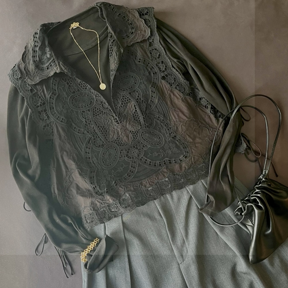 ブラウス自体が主役になるデザインなので、シンプルな長袖インナーとのレイヤードを真似するだけでコーデが決まり、秋冬の着こなしをアップデートしてくれそうです。