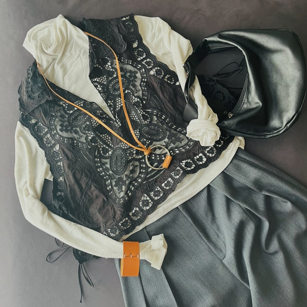 甘すぎず上品なレース×ブラックが好みのポイントで、気分が上がる一枚です♡