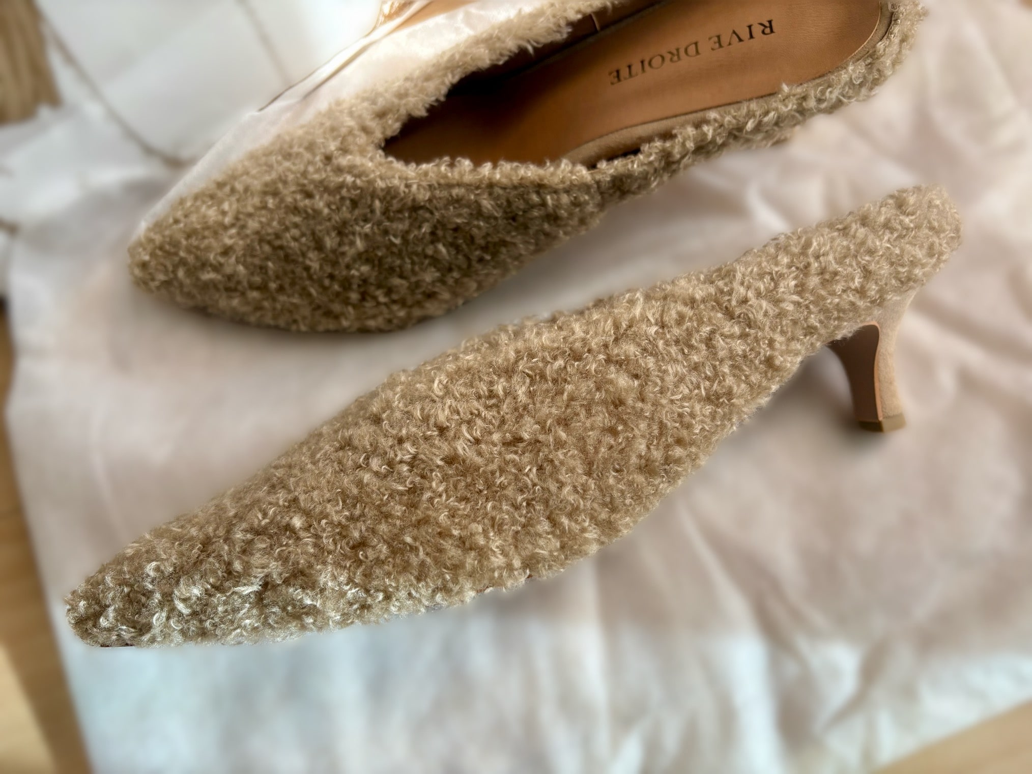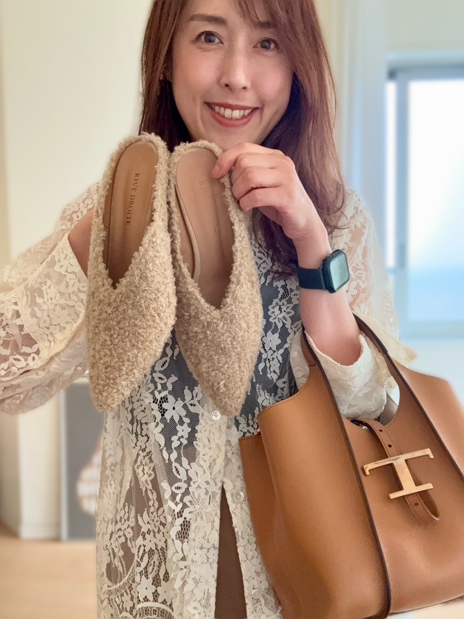今日のメインはリブドロワで購入した、ボアのミュールです♡素材感が可愛いのは言わずもがな、甲のカッティングも女性らしいVラインで足を入れた時の見え方が綺麗なんです!