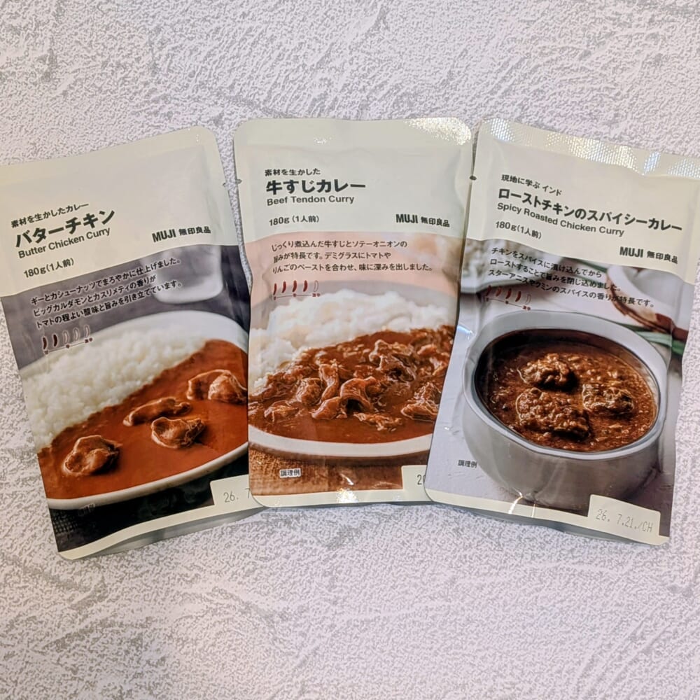 翌日はカレーに。子どもたちはバターチキン、夫には2択で用意したうち牛すじカレーが選ばれました。(ローストチキンのスパイシーカレーもおいしそう。自分用にキープします。)