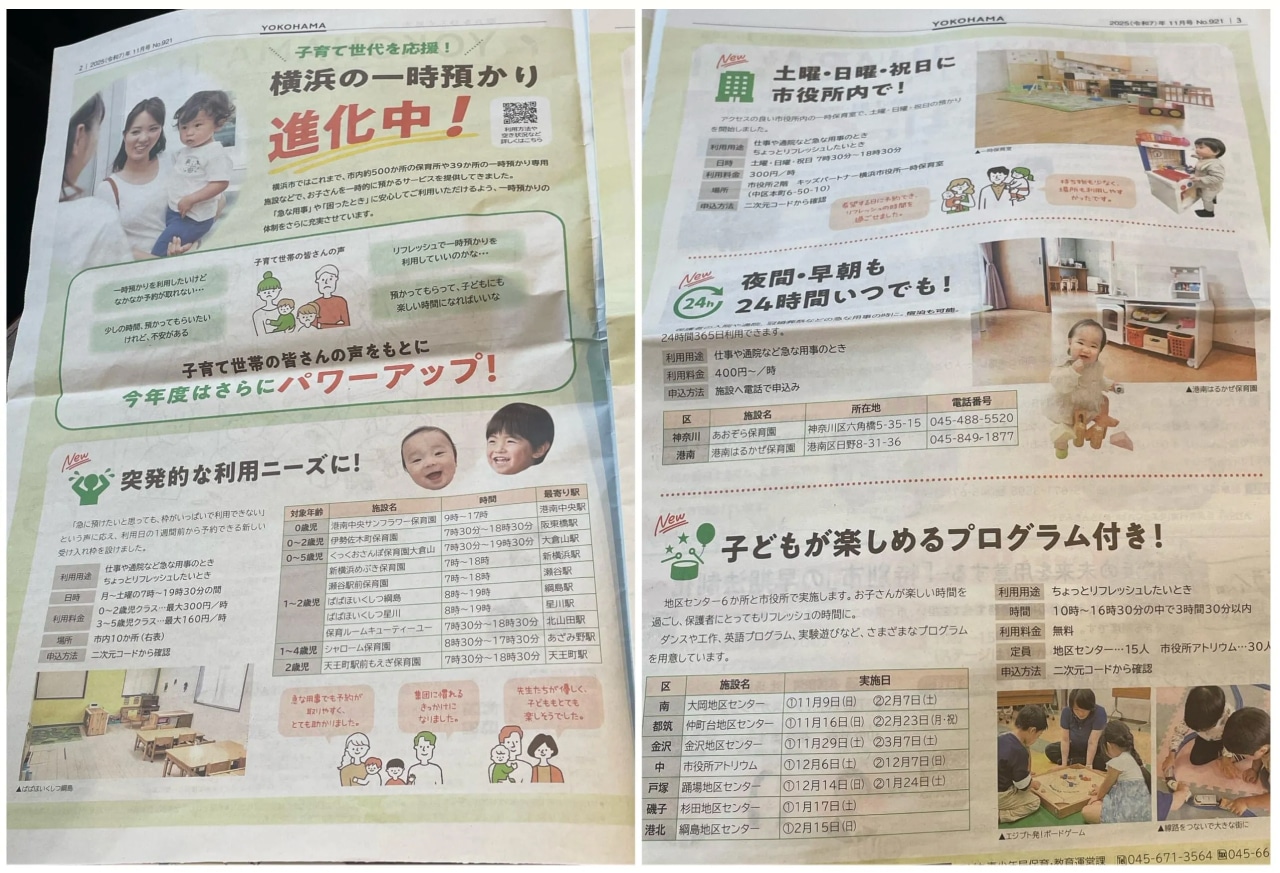 今般、突発的な「今日どうしても預けたい!」に応えるために、市が一時預かり事業を拡充。利用料金は1時間300円~という驚きの手頃さは変わらず!働く親だけじゃなく、家族の介護や急用がある家庭にとっても、まさに「セーフティーネット」的存在になってくれることでしょう…!また、リフレッシュ目的でも利用できる、土曜・日曜・祝日に市役所内で1時間300円での預かりサービスもスタート。さらに、一部の保育園では1時間400円~、夜間・早朝でも24時間365日利用できるそうです…!!