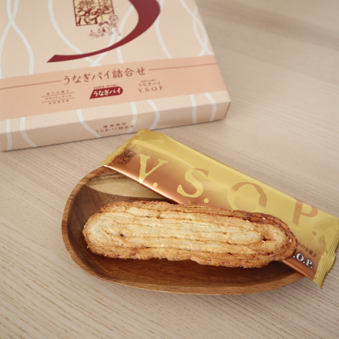 “真夜中のお菓子”「うなぎパイV.S.O.P.」は、高級ブランデーの芳潤な香りとナッツの王様マカダミアの風味を包み込みこんでいます!口に入れた瞬間から芳醇な香りがふわっと広がるんですー!