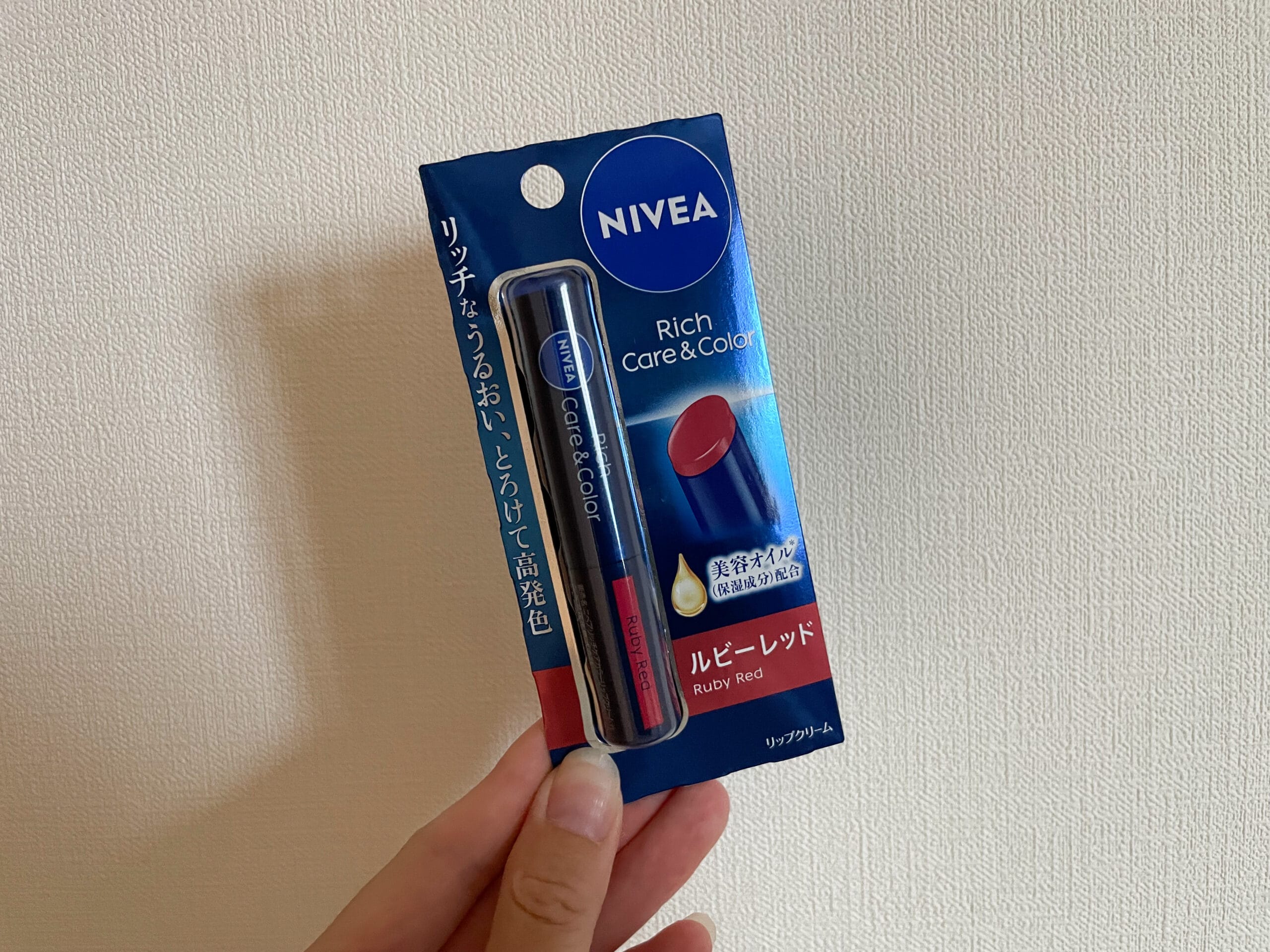 こちらの「ニベアのリッチケア&カラーリップ」は乾燥しづらく、発色も良いです。こちらはSPF20+です。