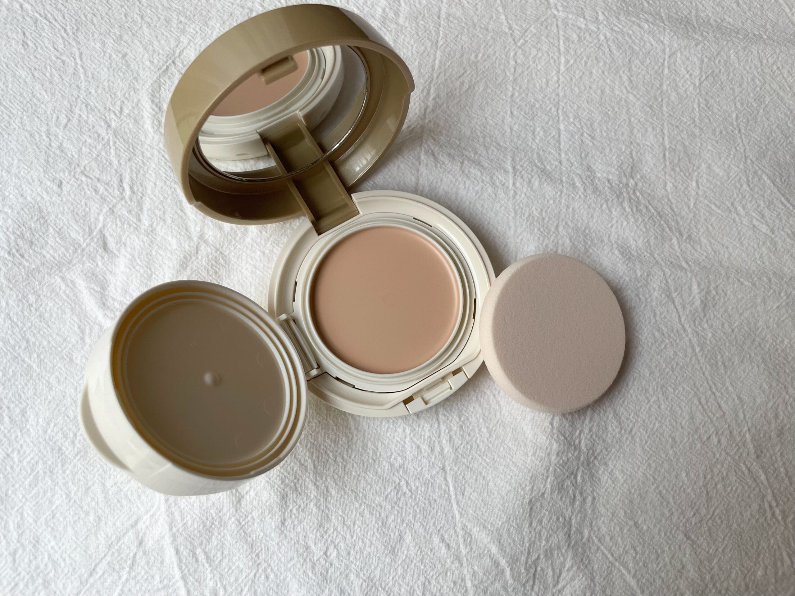 日焼け止め、化粧下地、ファンデが一つに!大きめなミラー付きでお直しも簡単にできますよ。