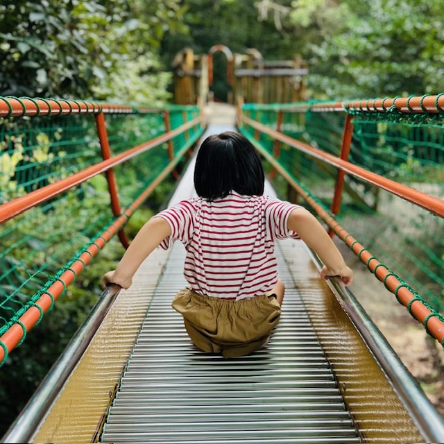 太陽が丘には無料エリアとして、遊びの森、冒険の森、ふれあいの森、ふるさとの森の4箇所があり、幼児向けの遊具やアスレチックが楽しめます。まだ子どもが小さい(1歳、4歳)我が家はそちらへ。