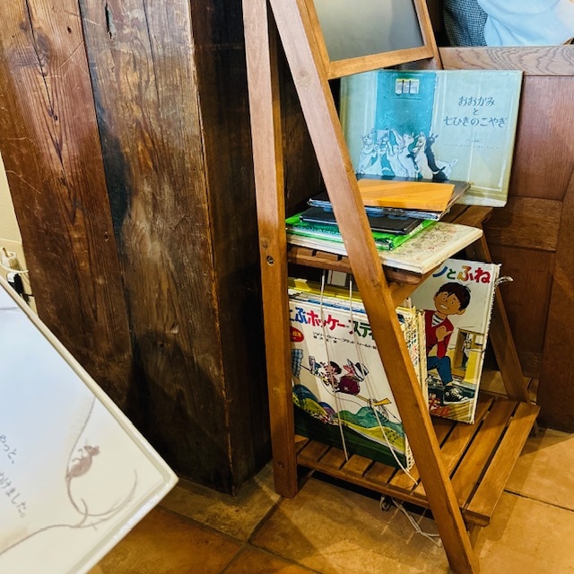 こちらは待合スペースなのですが、レトロな雑貨や世界各国の絵本などがあり、それだけでもうテンションの上がるくまおです。