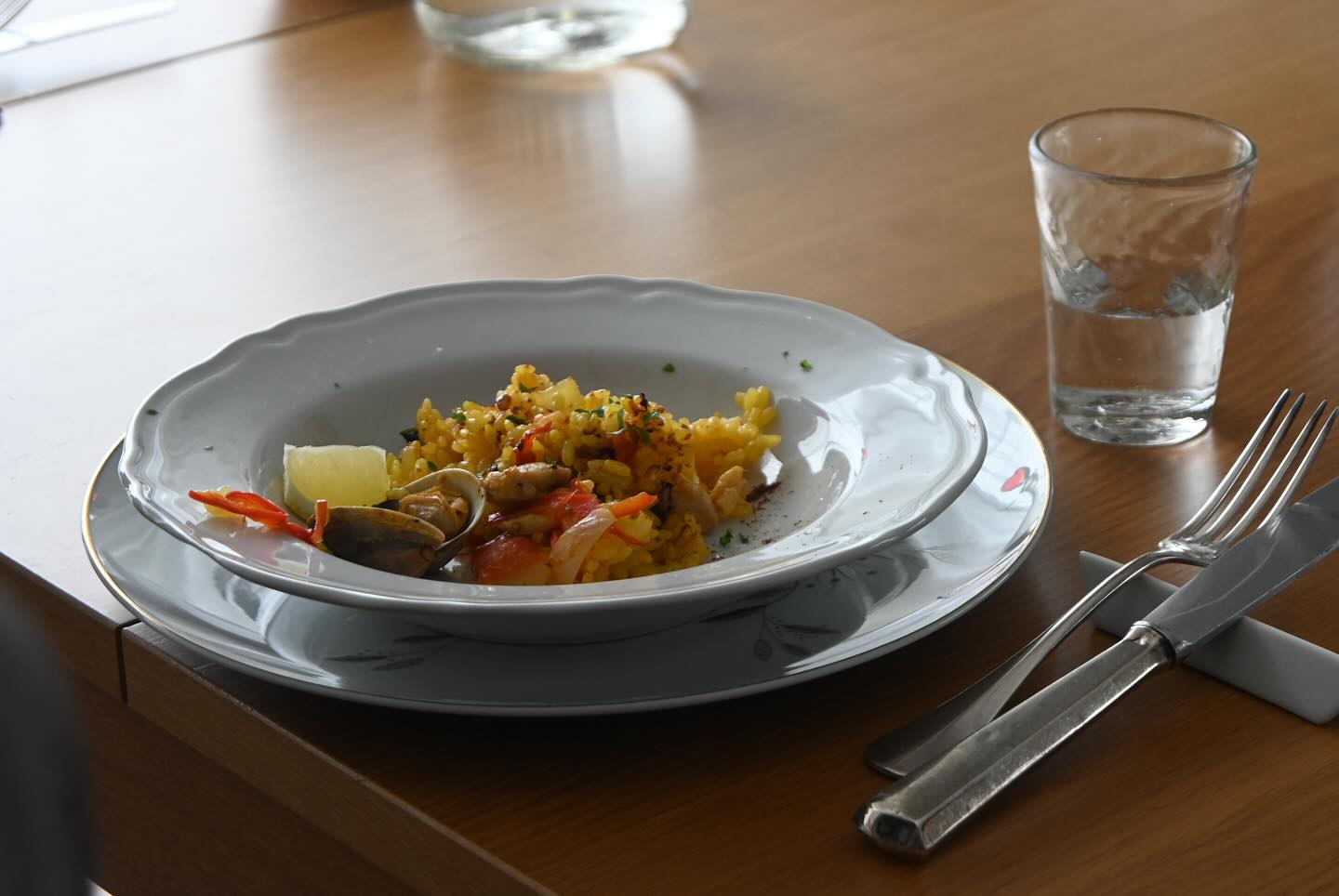 エビや貝、お肉、野菜がたっぷり入った豪華なパエリア。おもてなしにぴったりな1品です。