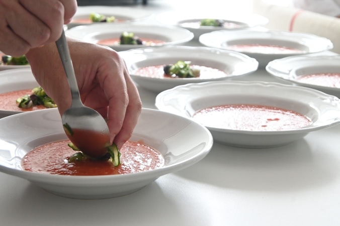 今回教えていただいたのは、ガスパチョ、焼き茄子卵、パエリアにバスクチーズケーキの4品です。