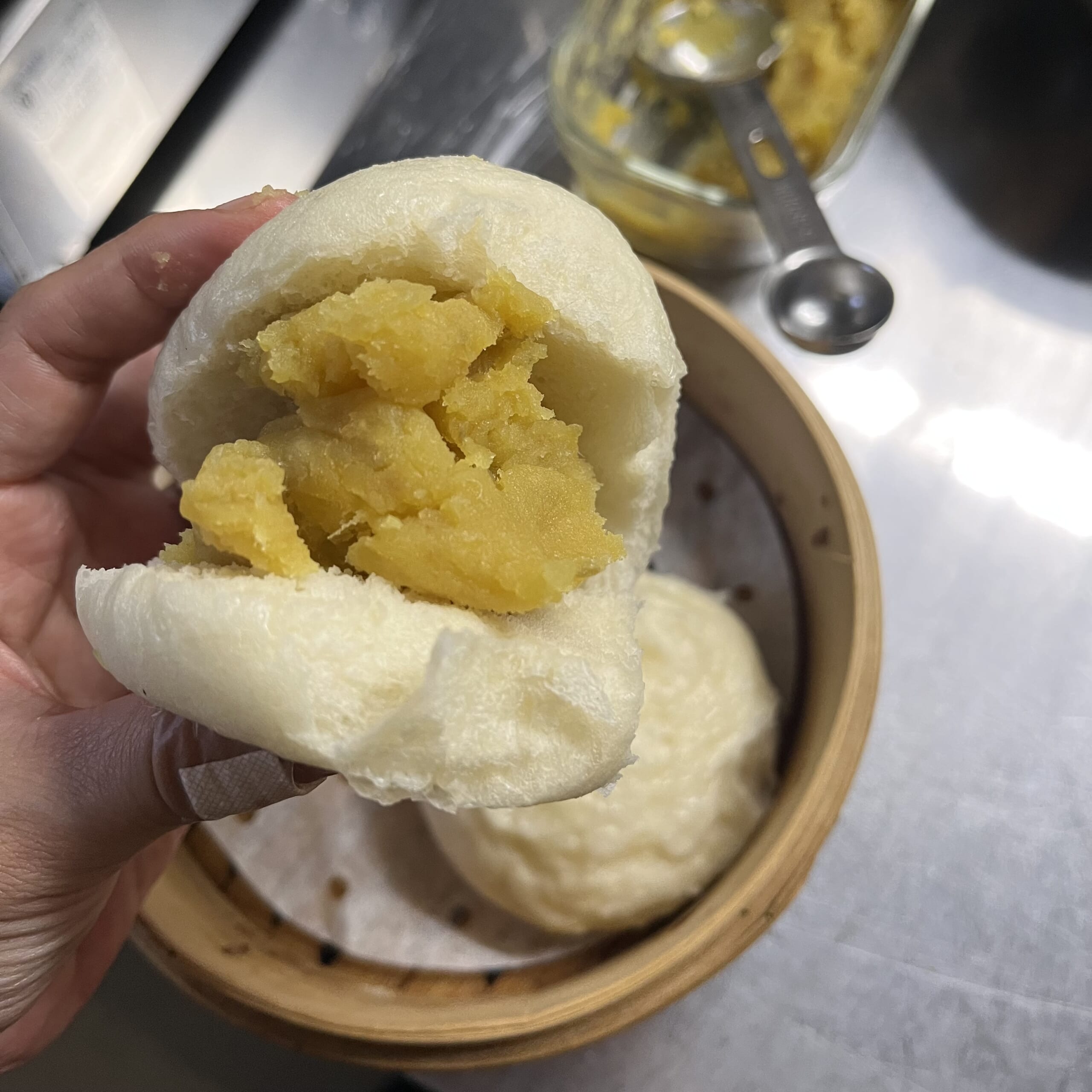 先ほど作った焼きいもあんもサンドして、焼いもあんの饅頭も出来上がり!